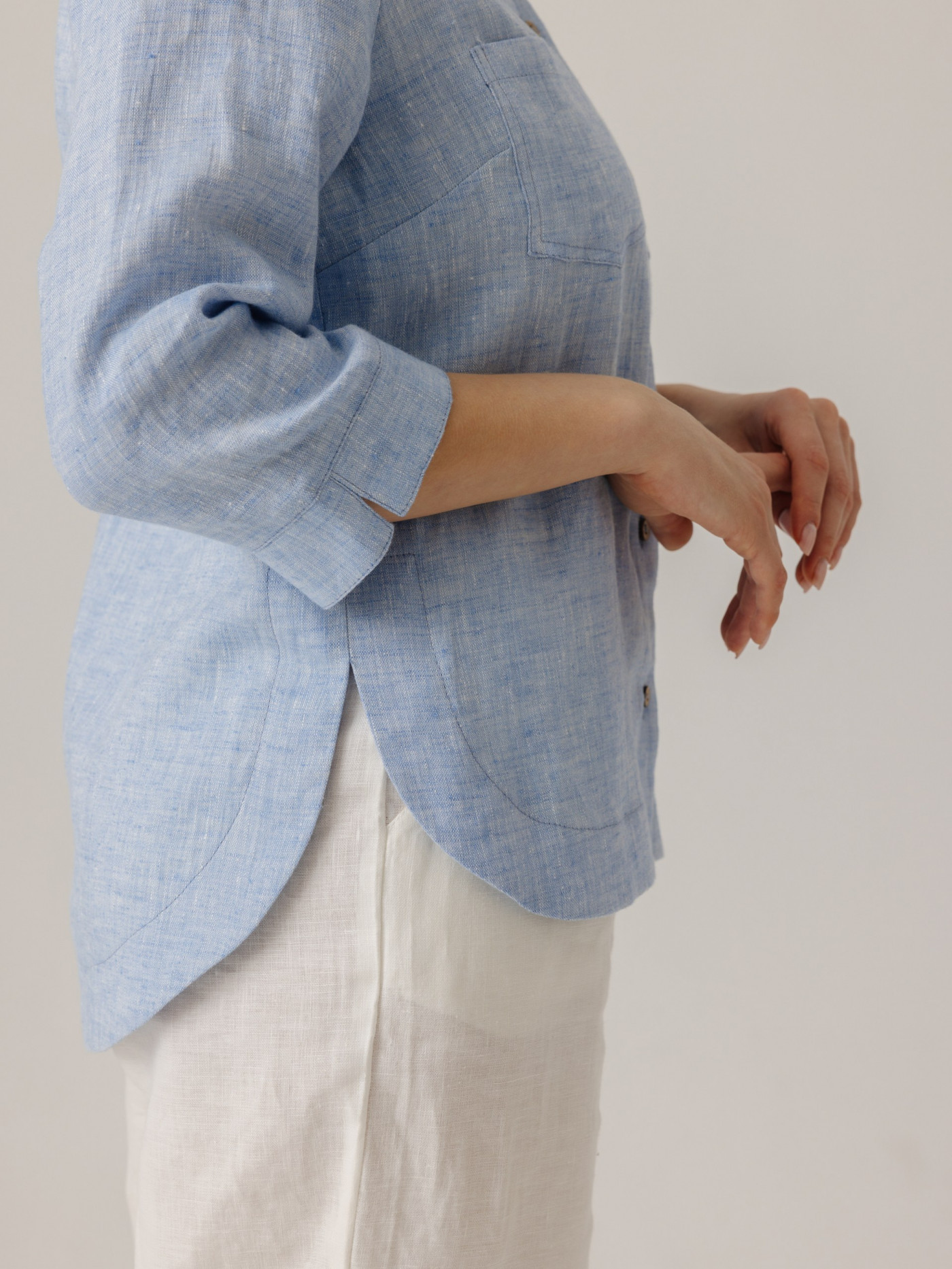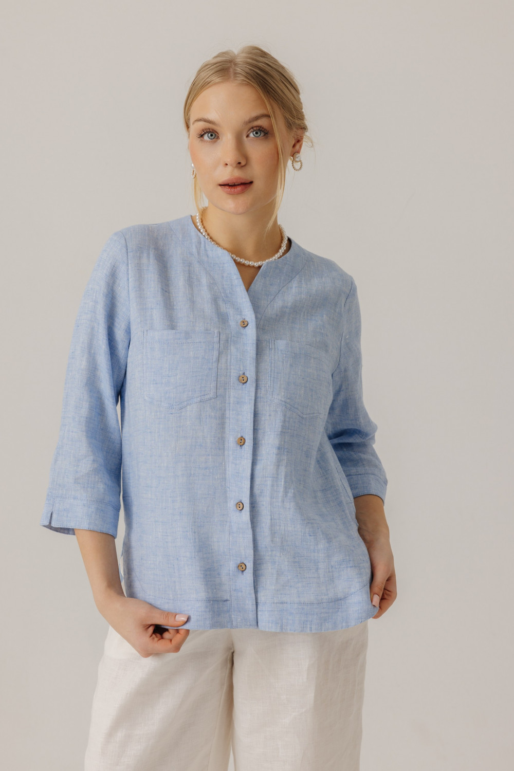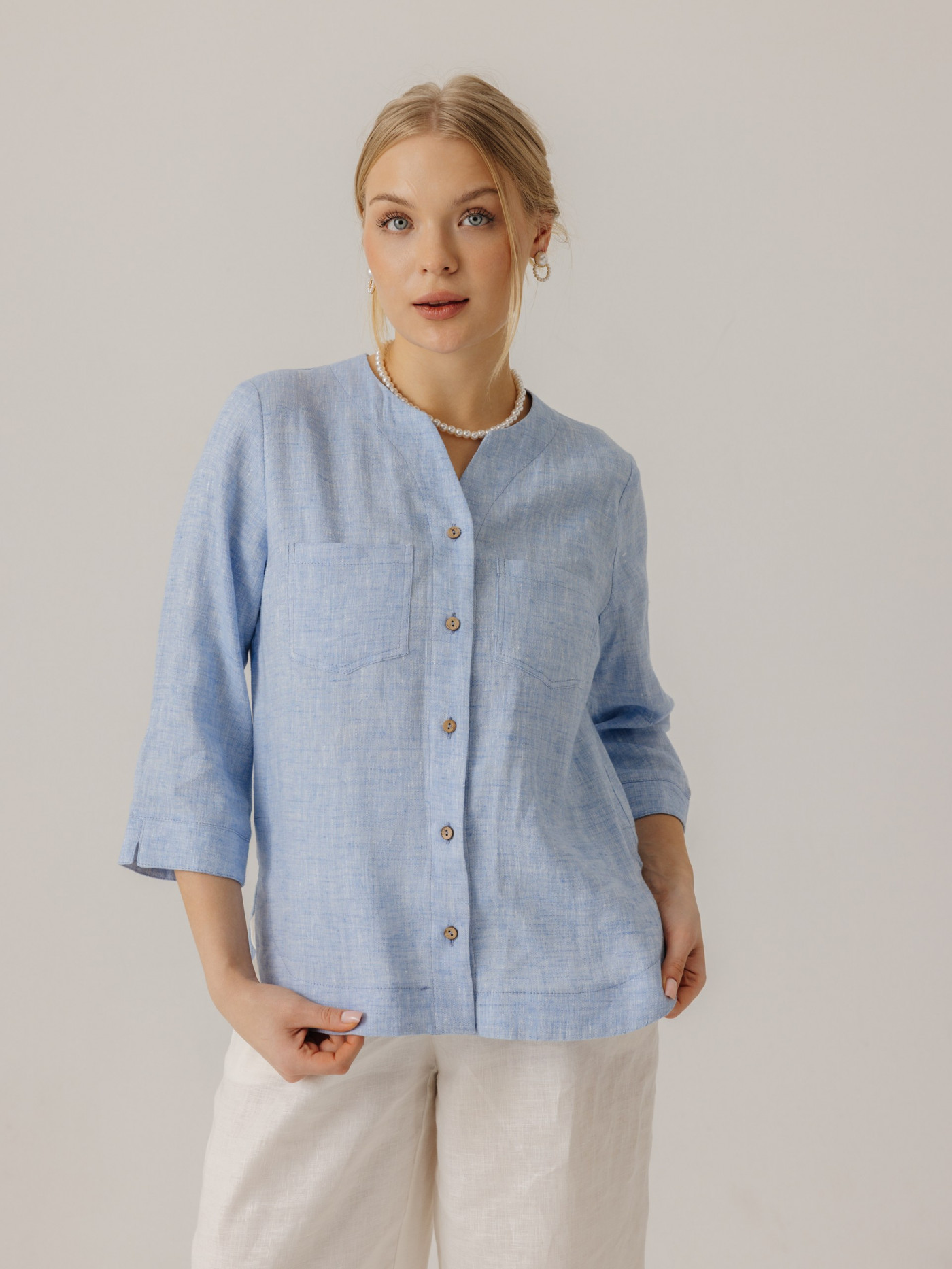 Блузка 100% лен, текстиль. Силуэт приталенный.
