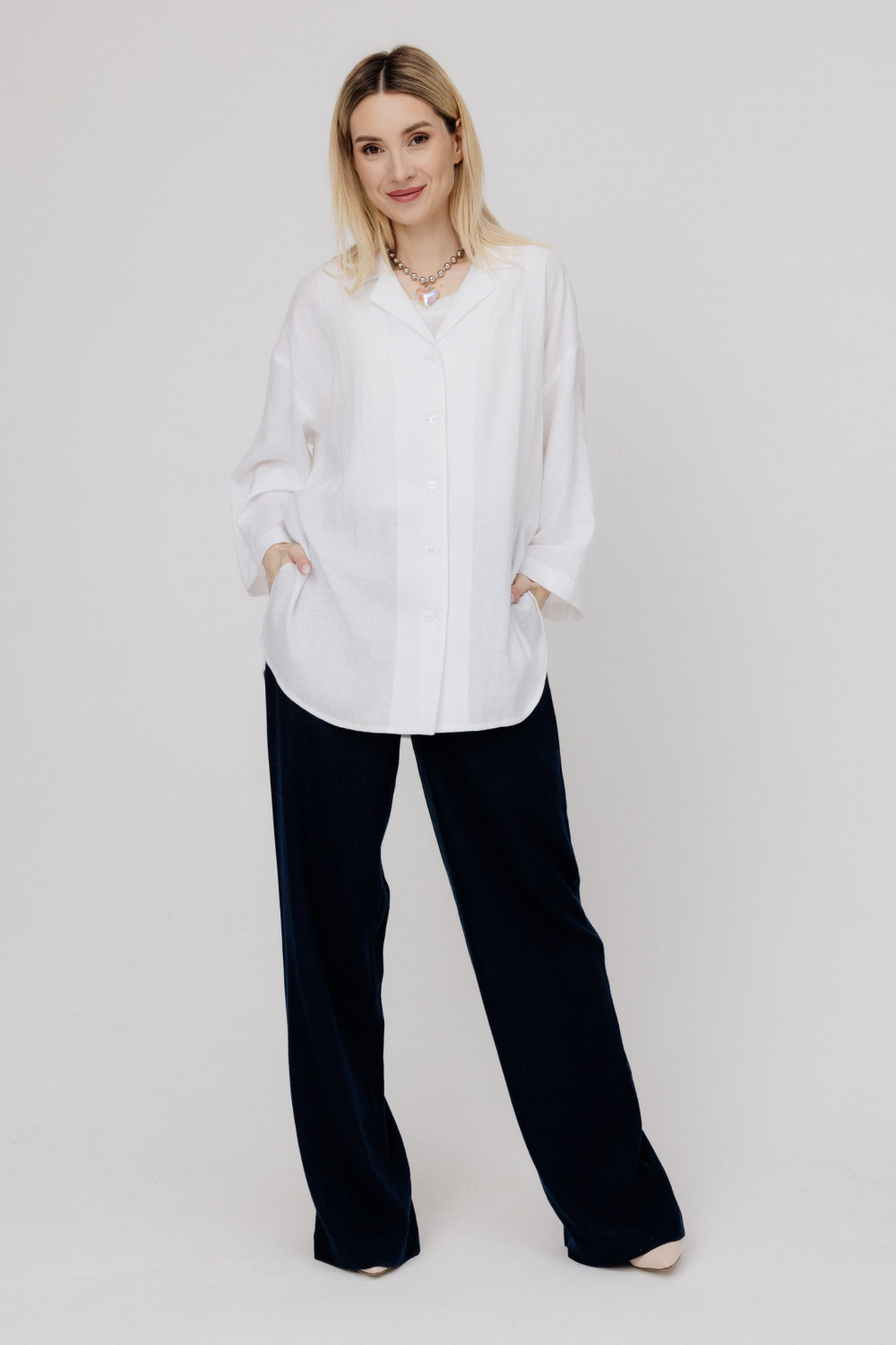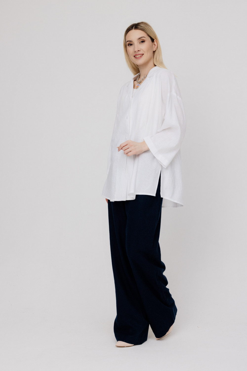 Блузка 100% лен, текстиль. Силуэт свободный.