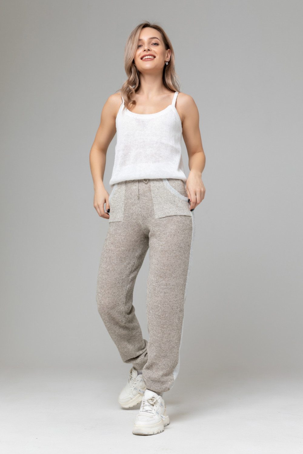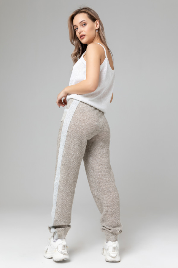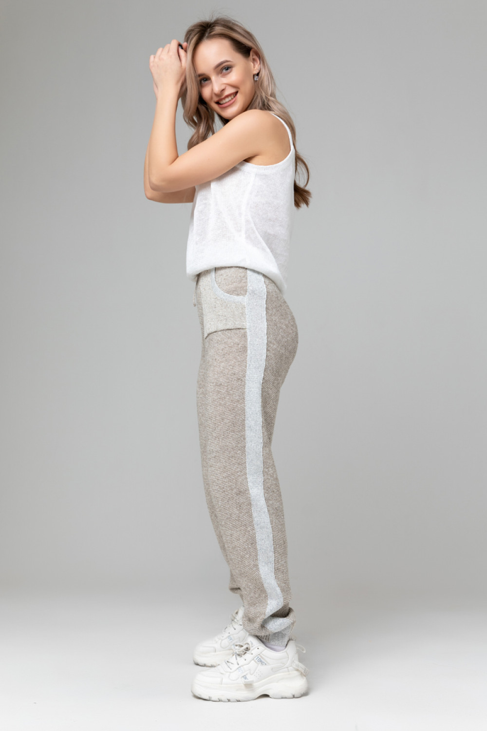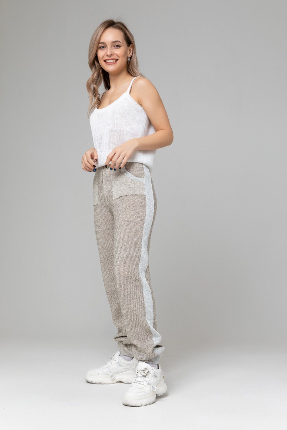 Отделка в виде лампаса по боковым швам. Лампас изготовлен из льняной пряжи с добавлением метанитовой нити.