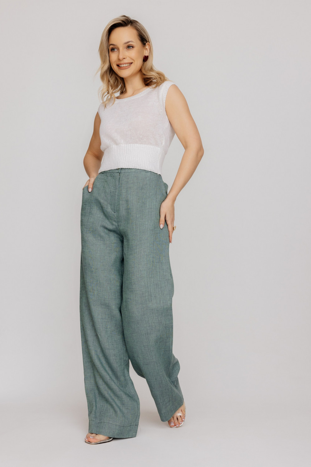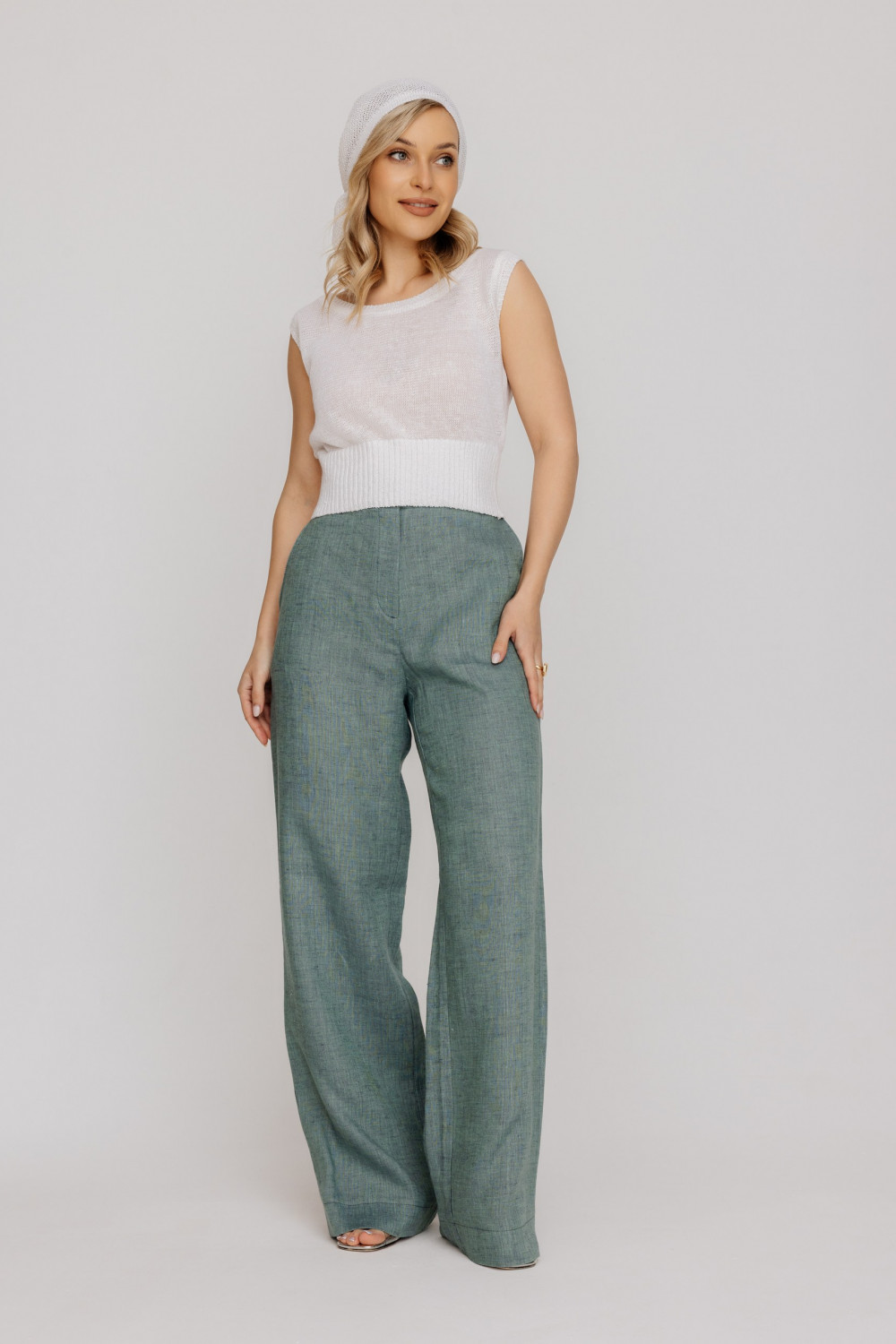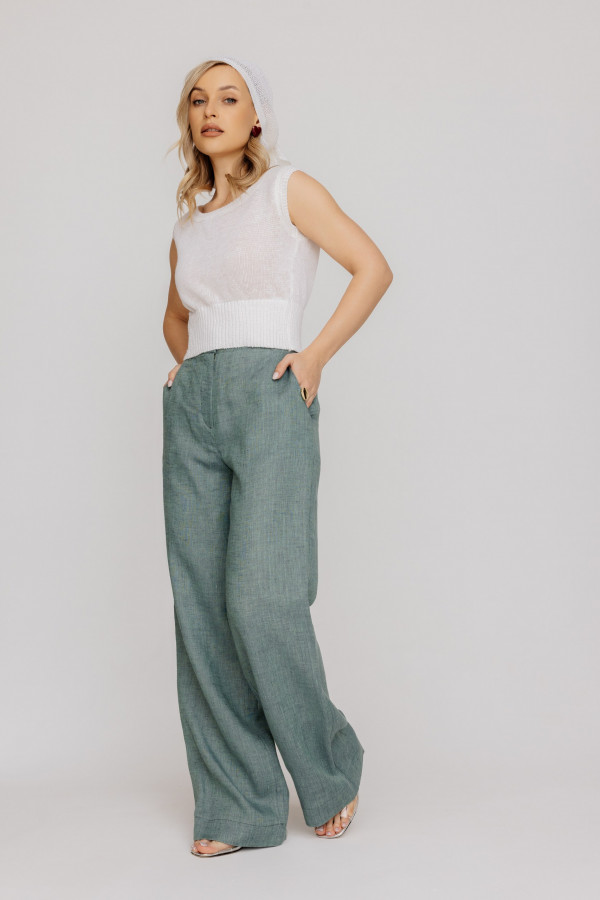 Брюки из 100% льняной ткани .