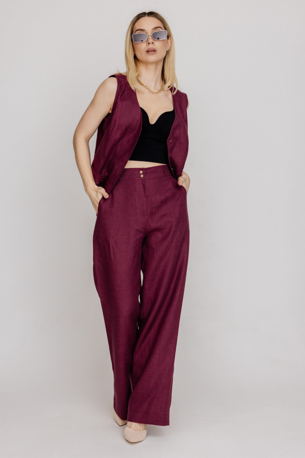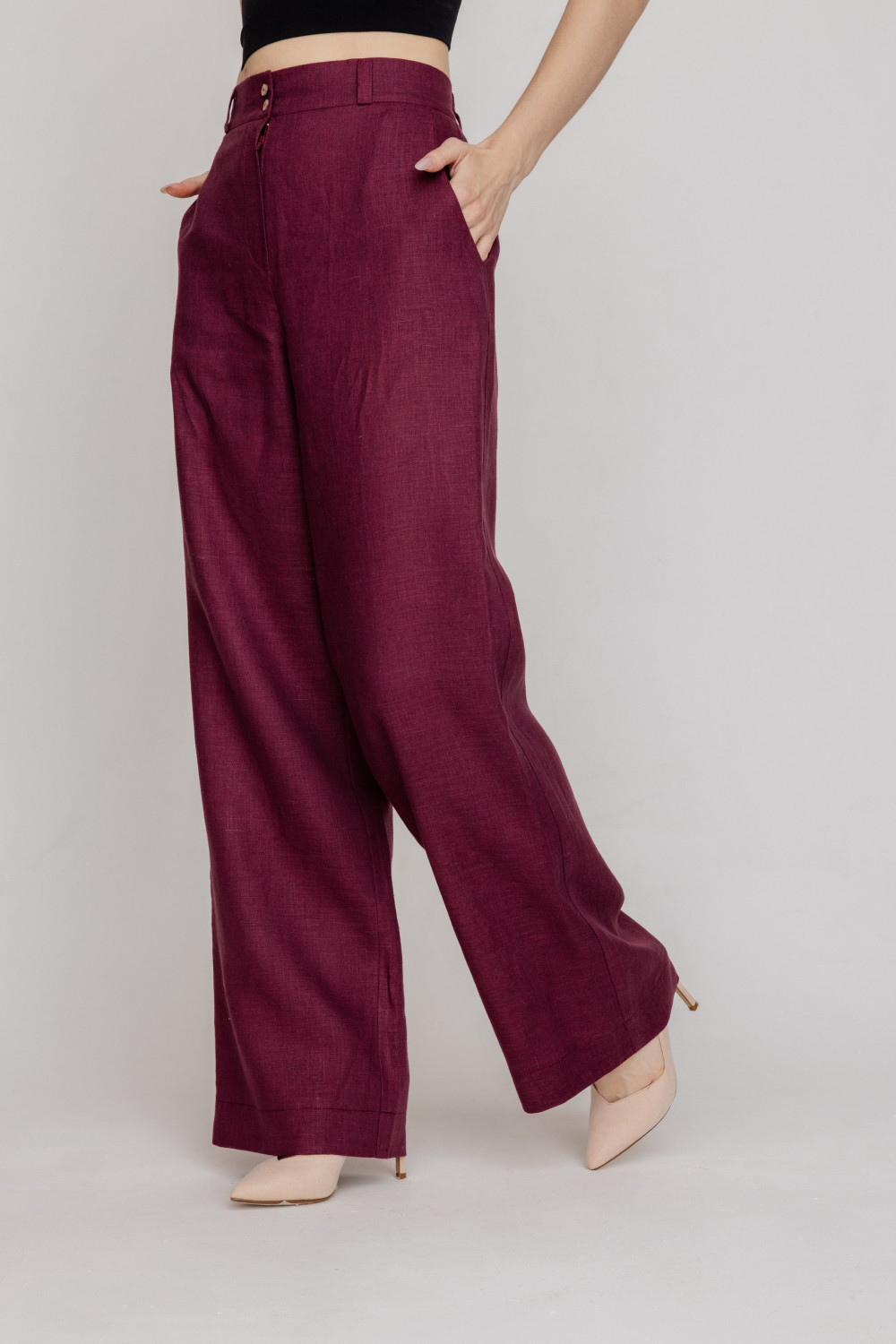 Брюки из 100% льняной ткани .