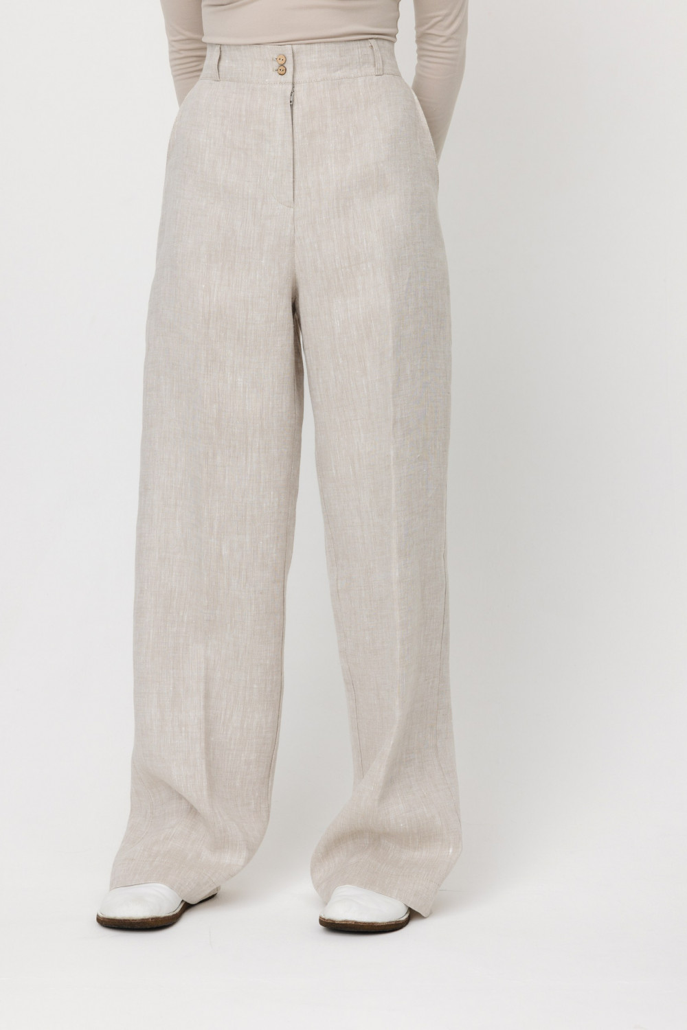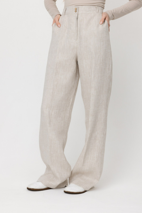 Брюки из 100% льняной ткани .
