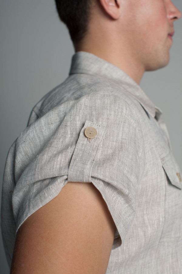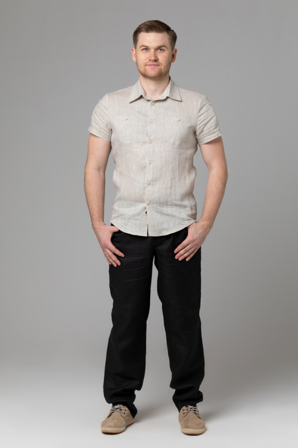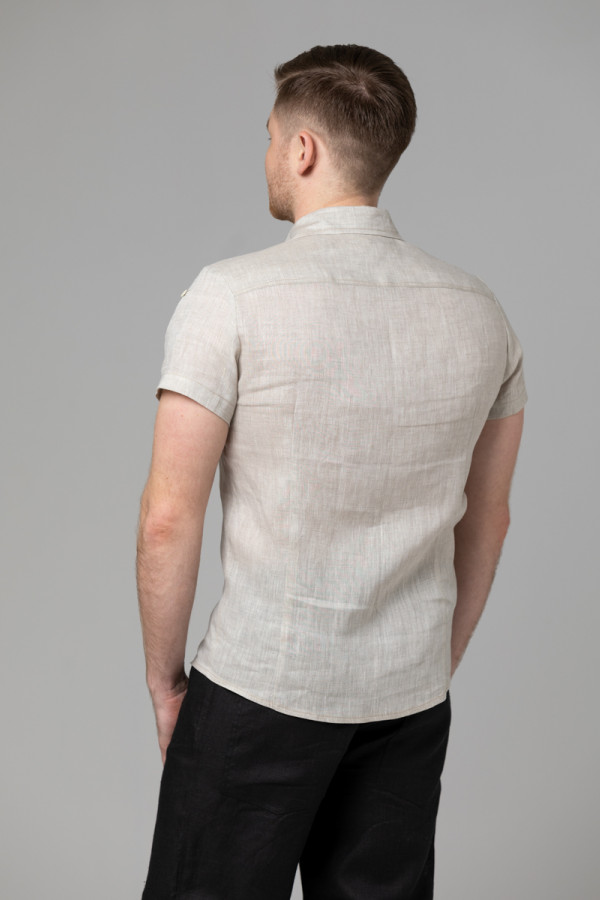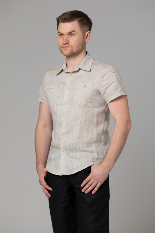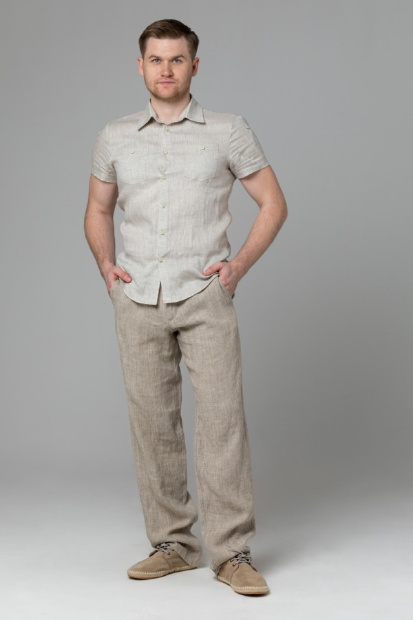 Сорочка мужская из льняной ткани, силуэт приталенный.