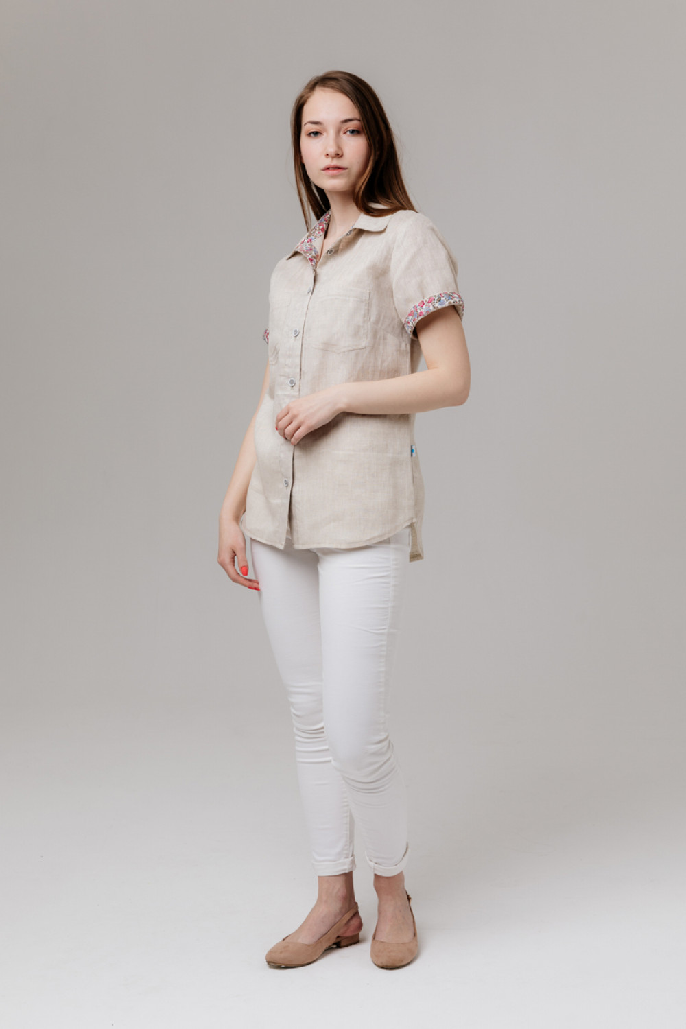 Сорочка 100% лен, текстиль. Силуэт приталенный.