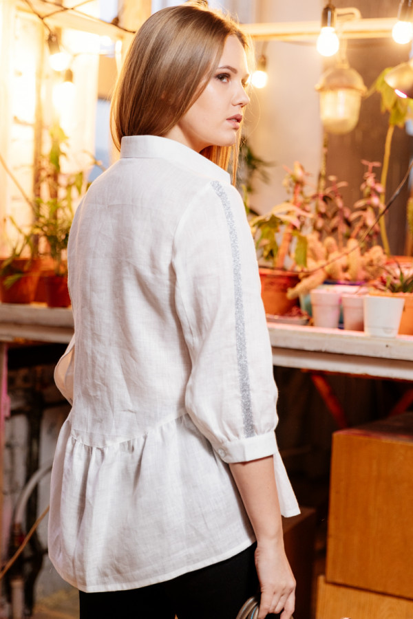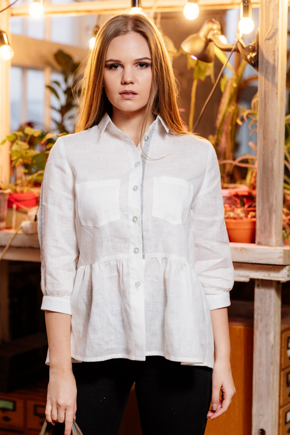 Блузка 100% лен, текстиль. Силуэт приталенный.