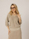 Джемпер изо льна. Вязка полуфанг, рукав реглан, по низу резинка, горловина на мыс, 2 накладных кармана.