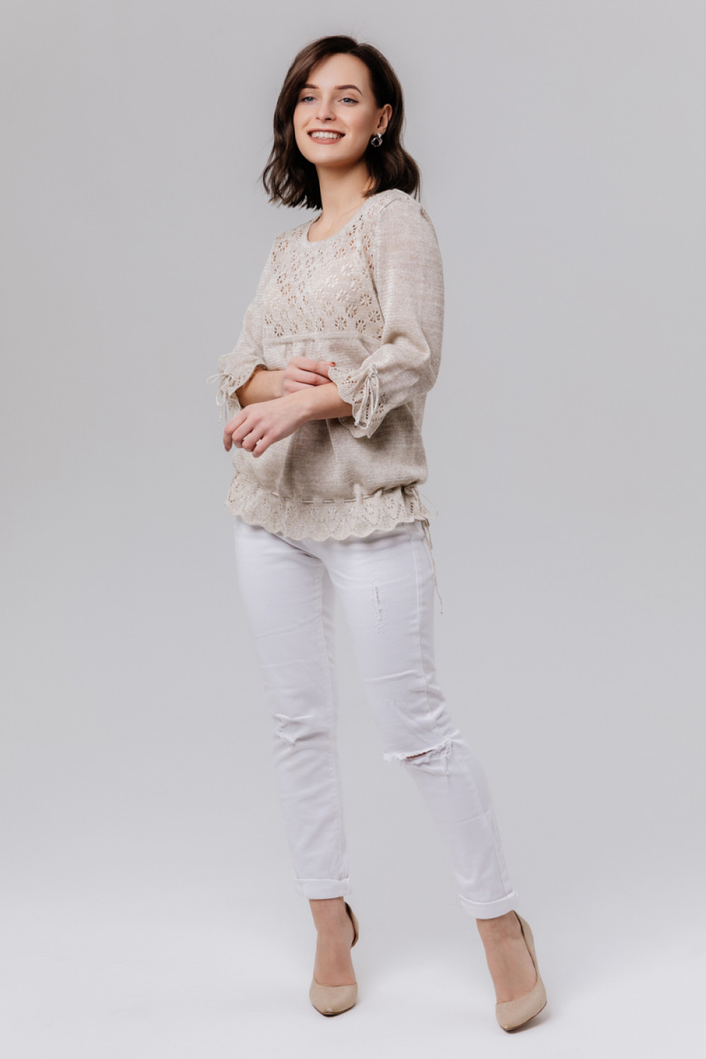 Джемпер изо льна, прямого силуэта.