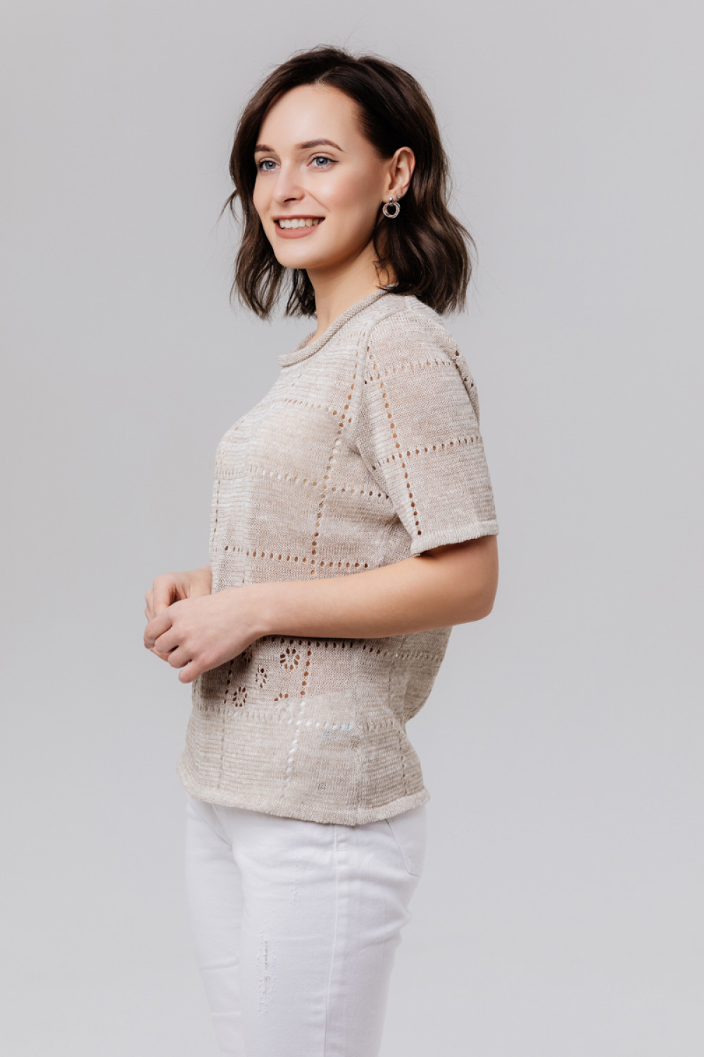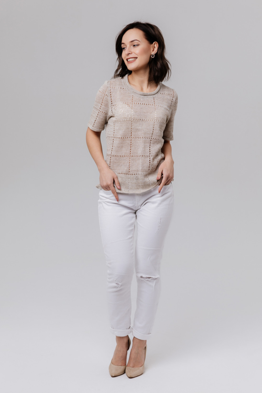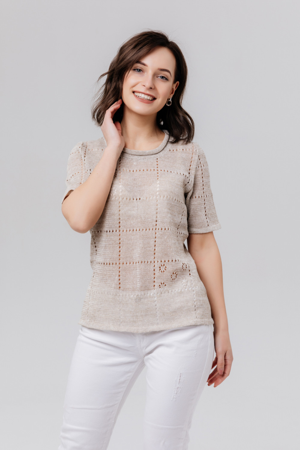 Джемпер 100% лен, силуэт приталенный до 54 размера.
