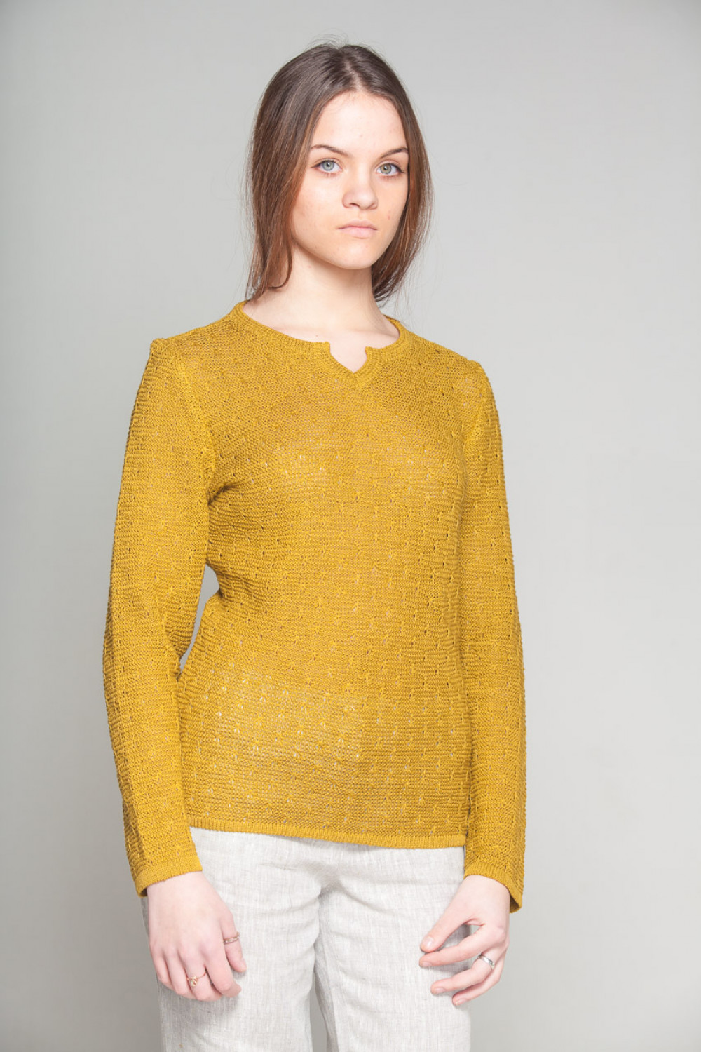 Джемпер женский 100% лен, силуэт приталенный.