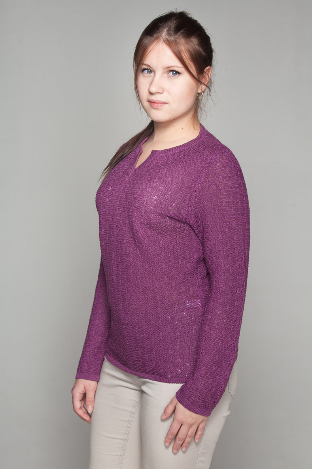 Джемпер женский 100% лен, силуэт приталенный.