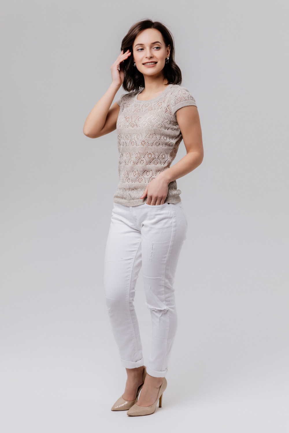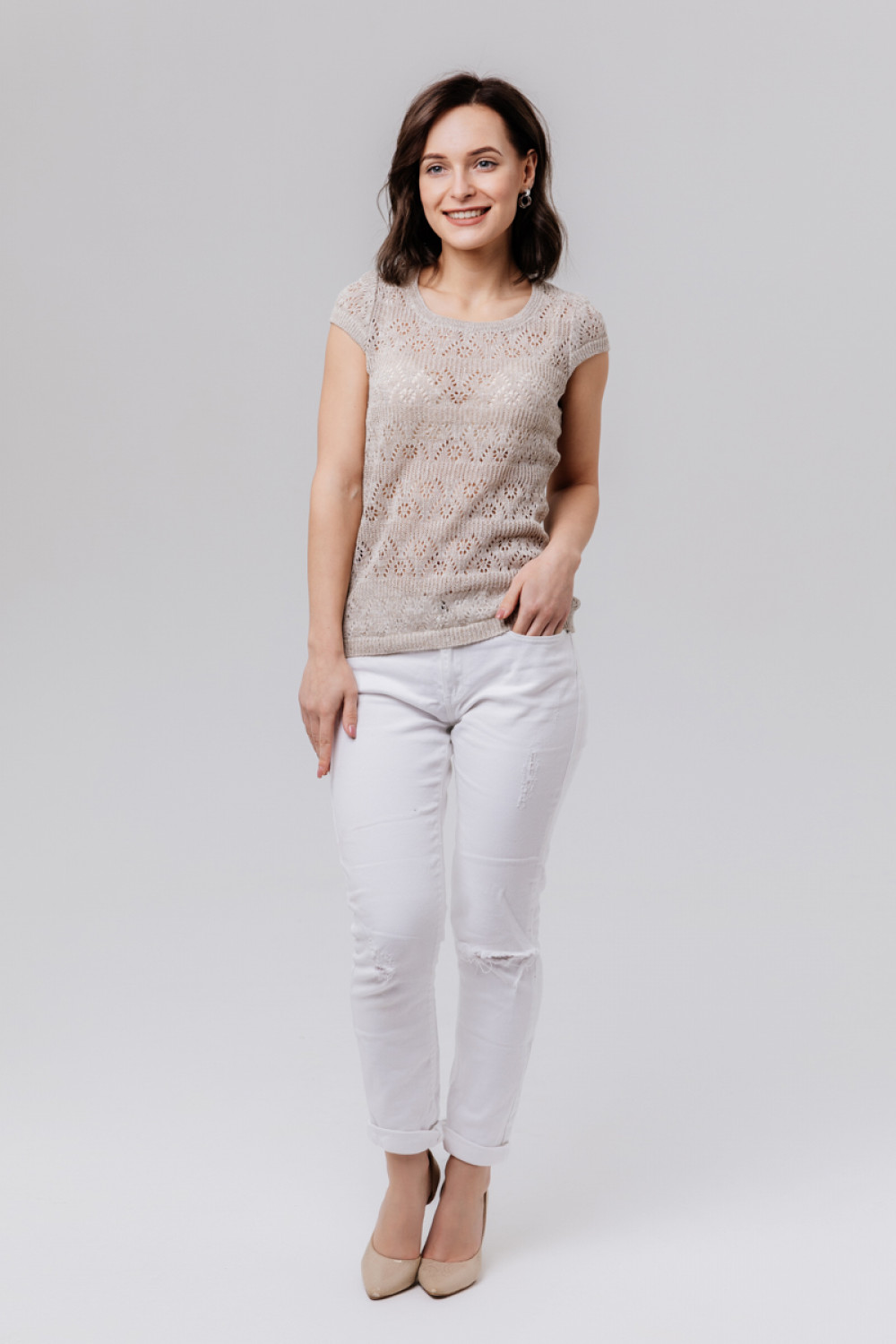 Джемпер 100% лен, силуэт приталенный.