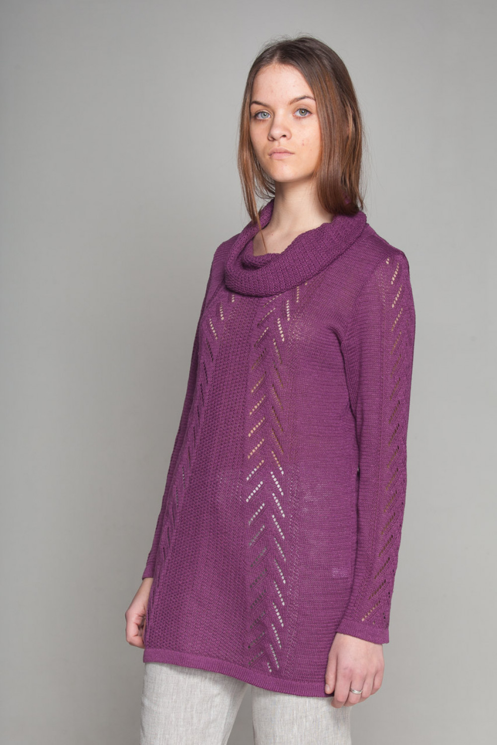 Джемпер изо льна, силуэт прямой удлиненный, расширенный к низу.