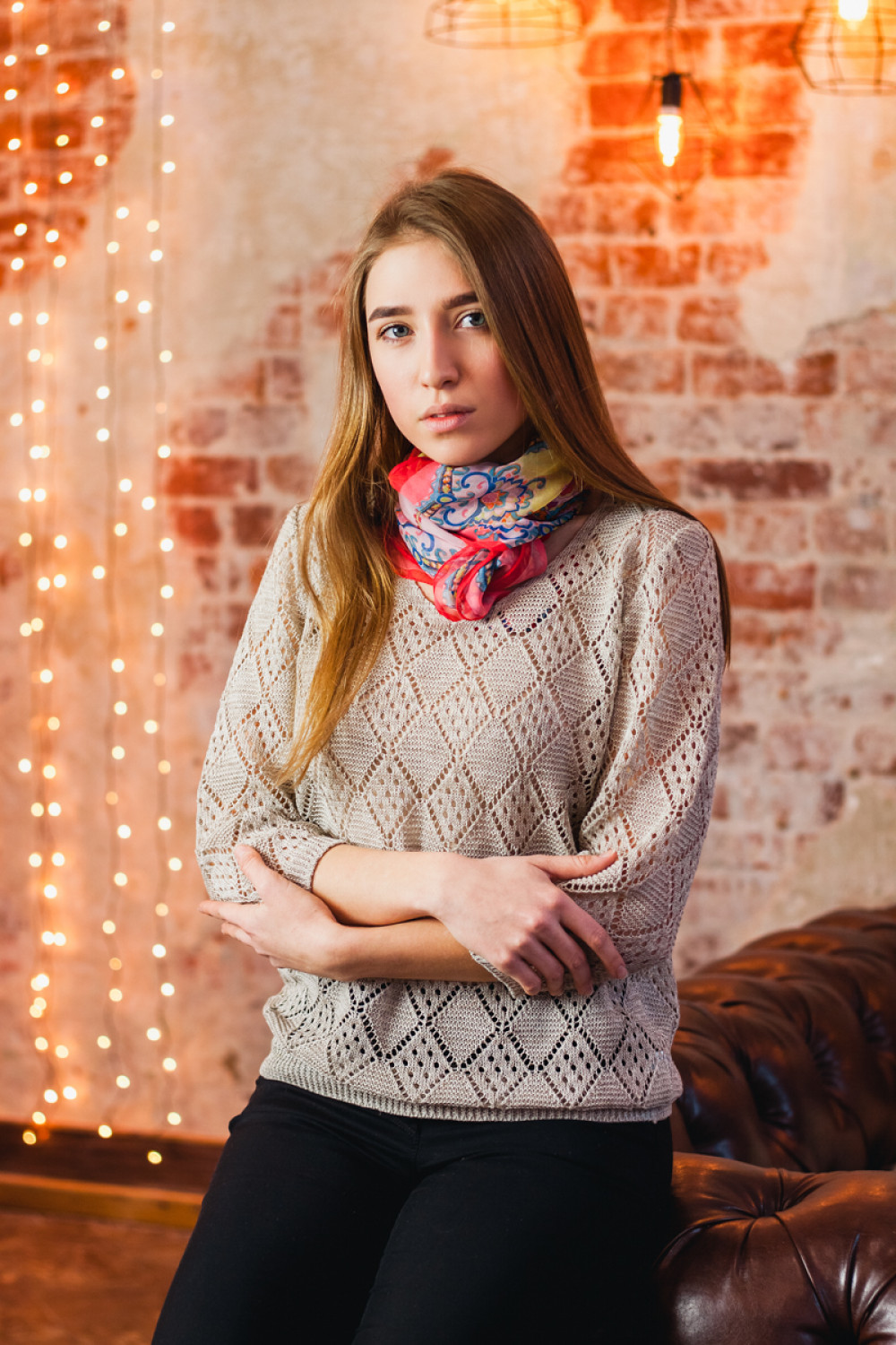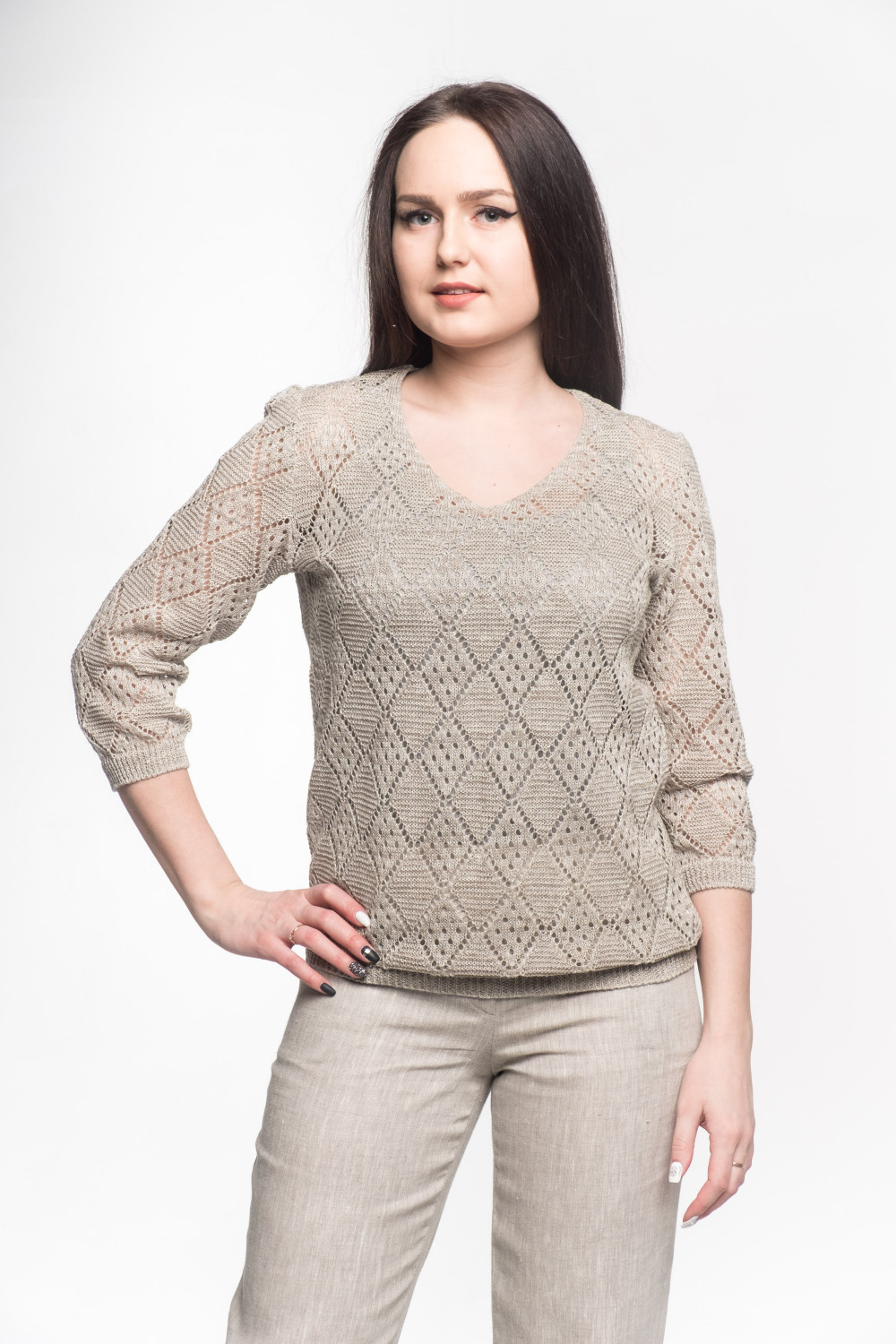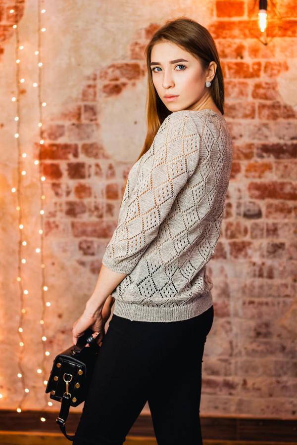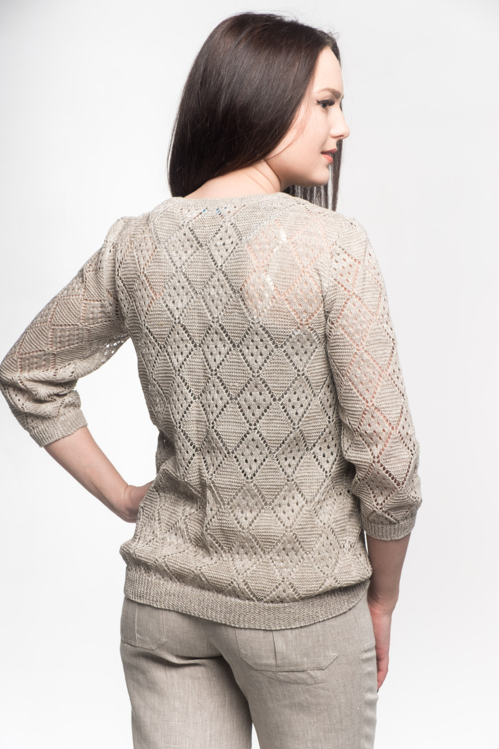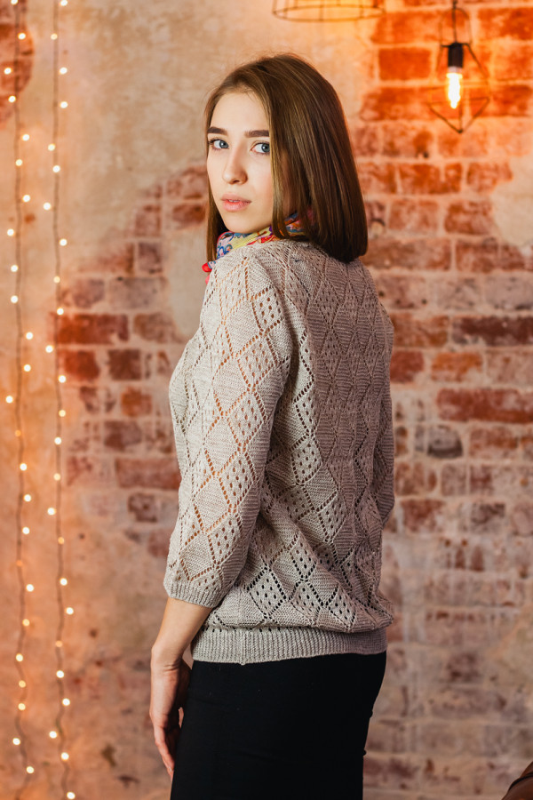 Джемпер 100% лен, легкий ажур, силуэт прямой.