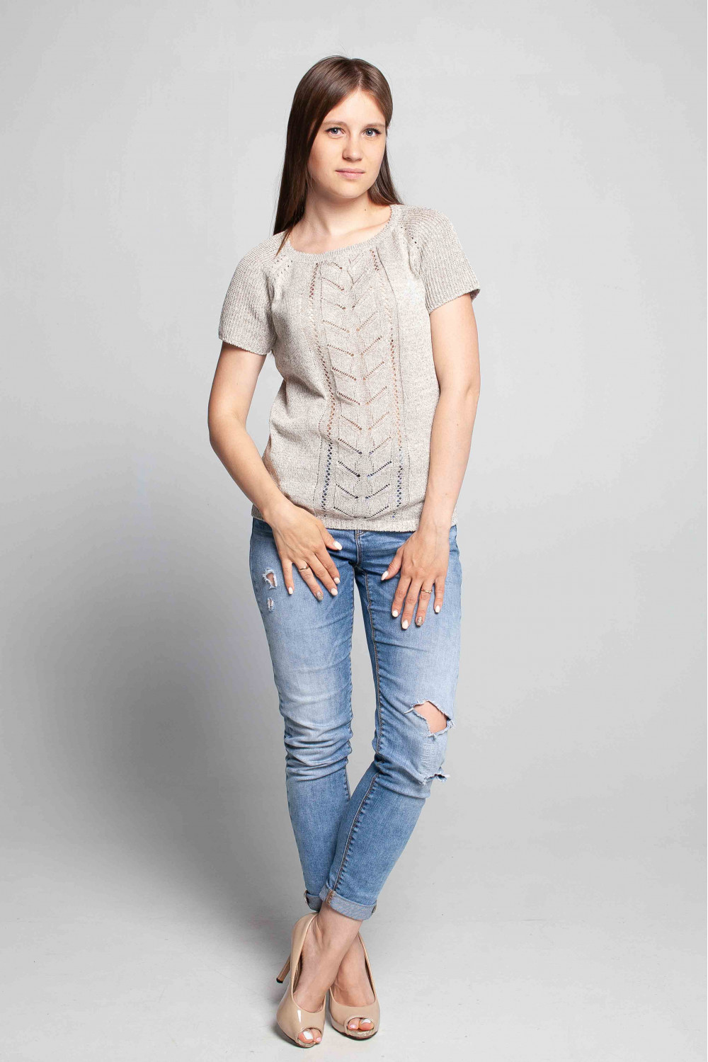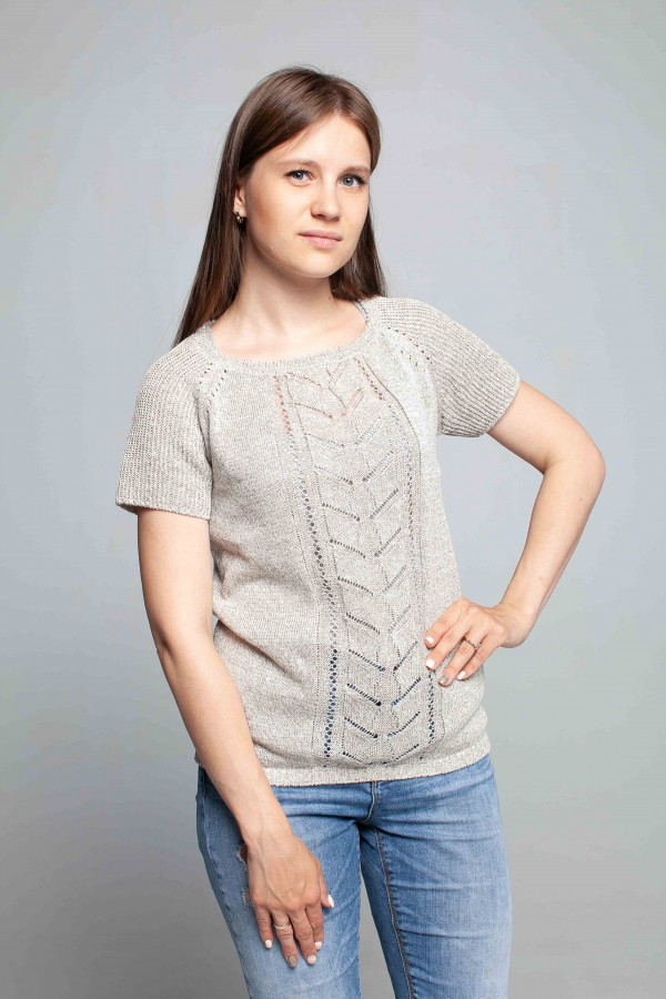 Джемпер 95% лен, 5% люрекс, прямой силуэт.