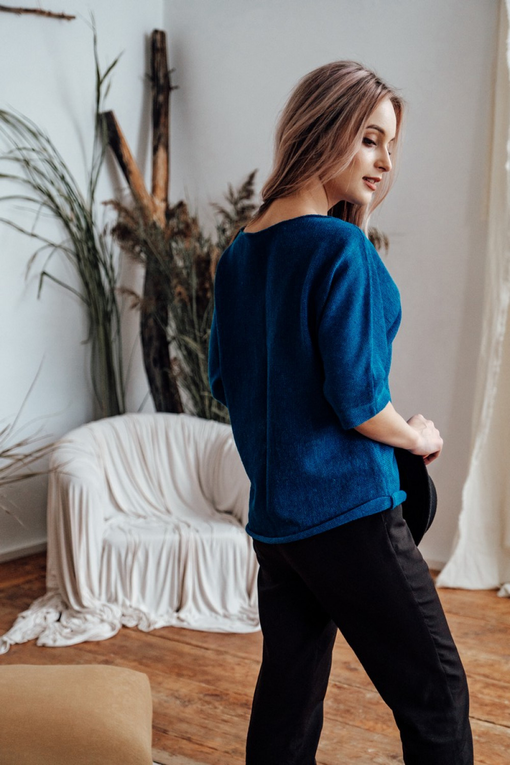 Джемпер повседневный 100% лен, прямого силуета.