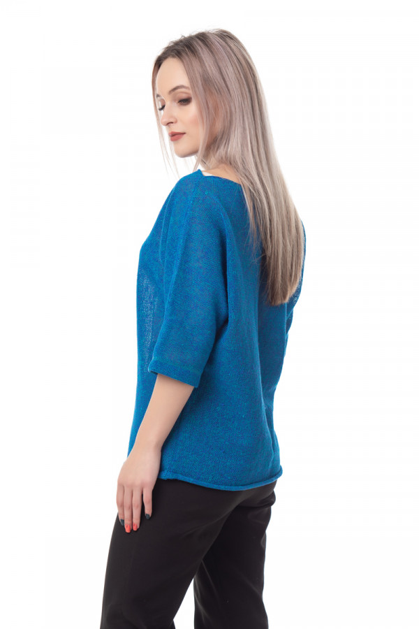 Джемпер из льна 4-254 василек меланж