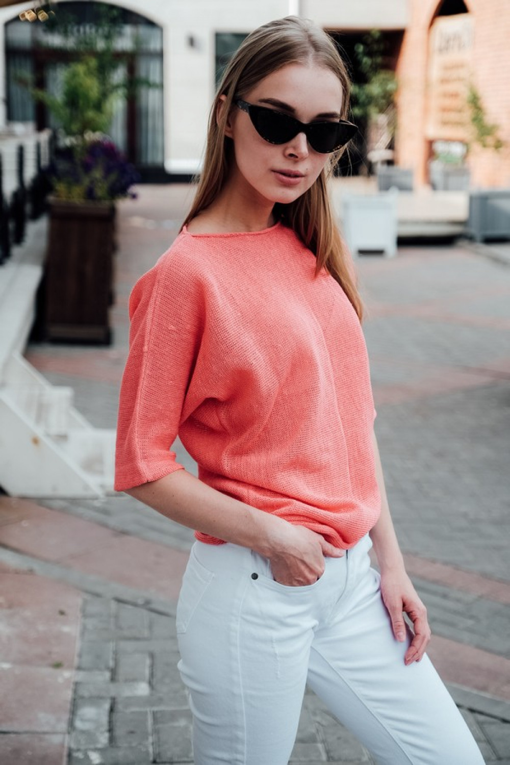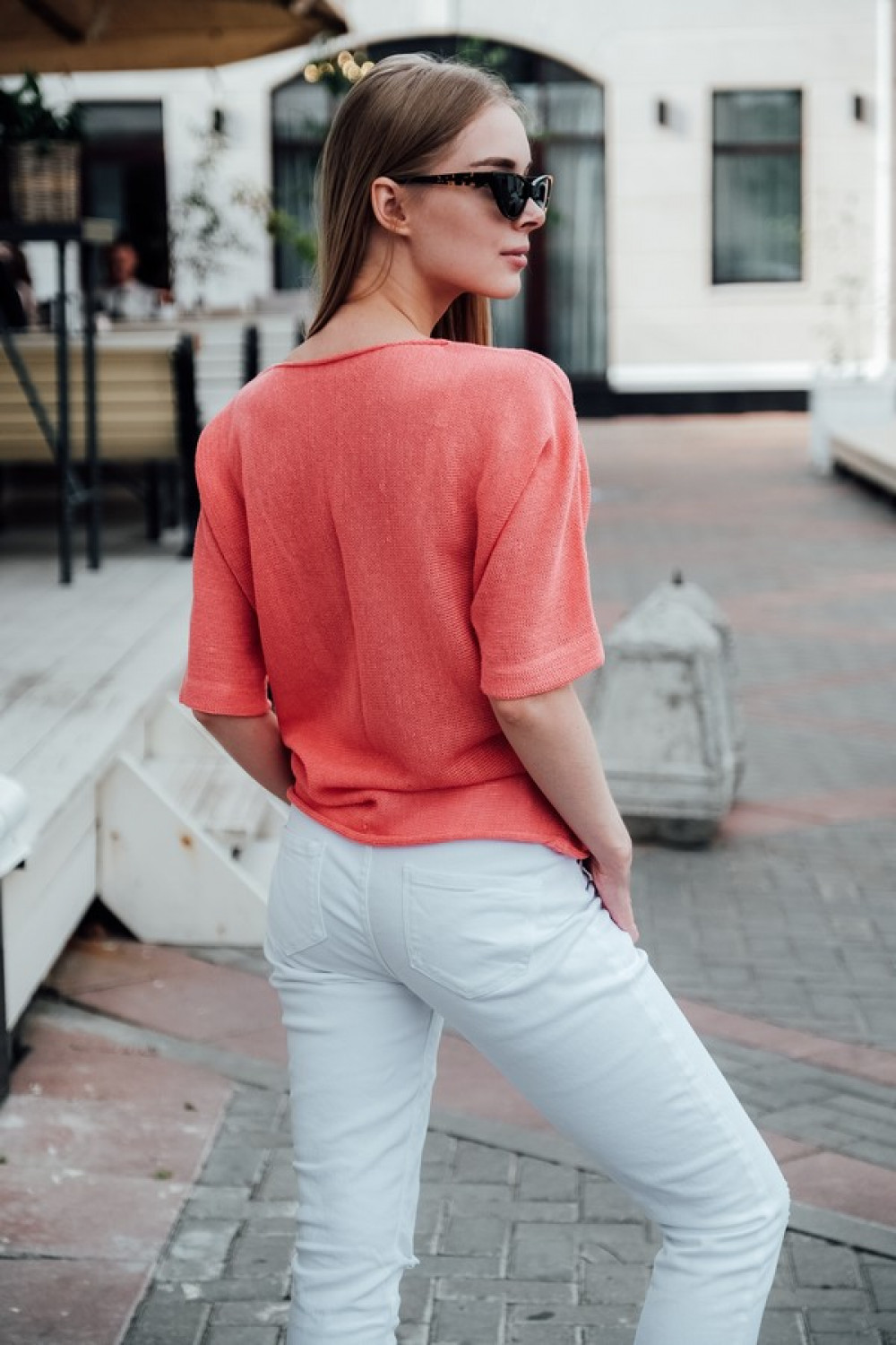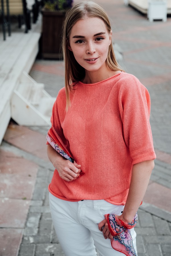 Джемпер повседневный 100% лен, прямого силуета.