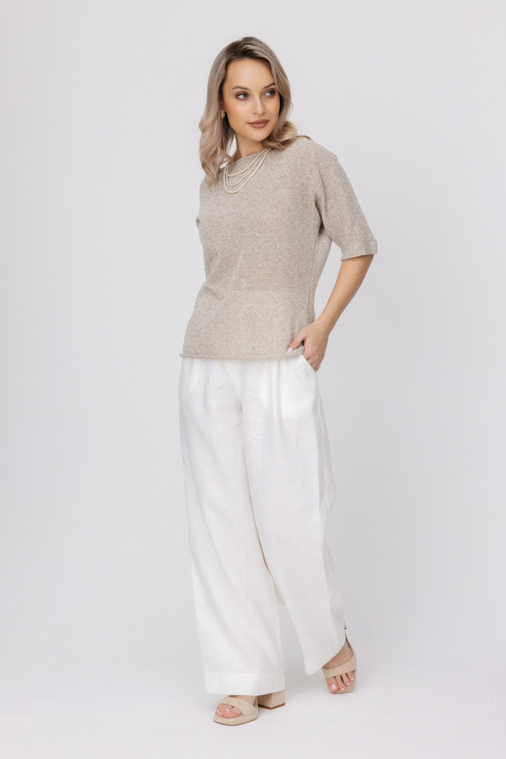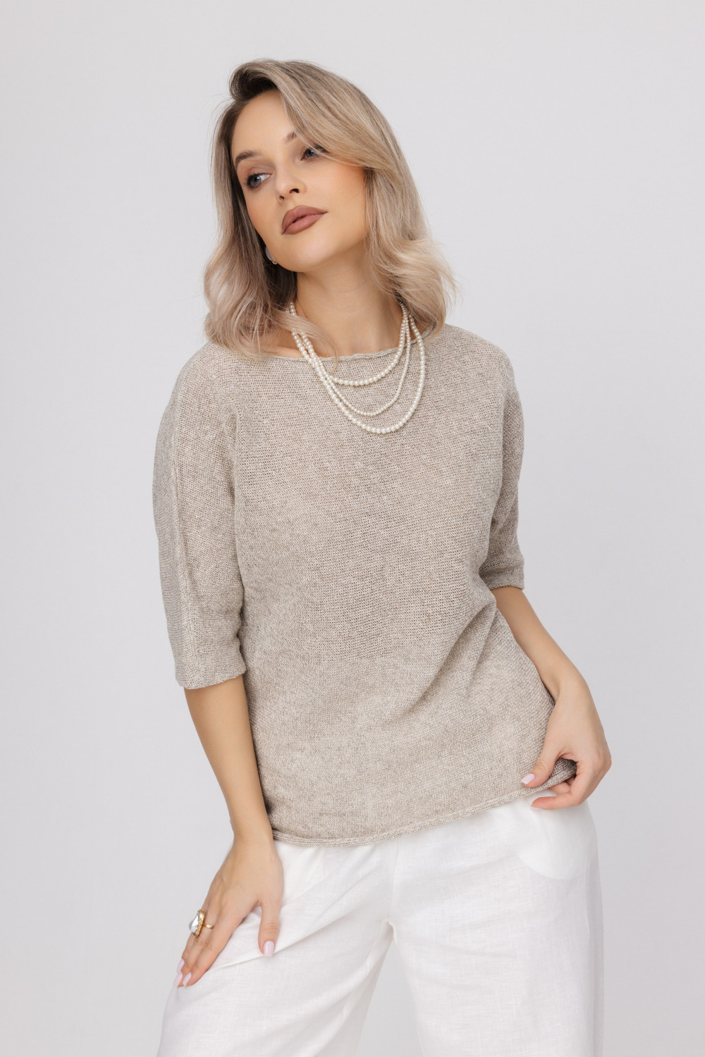 Джемпер повседневный 100% лен, прямого силуета.