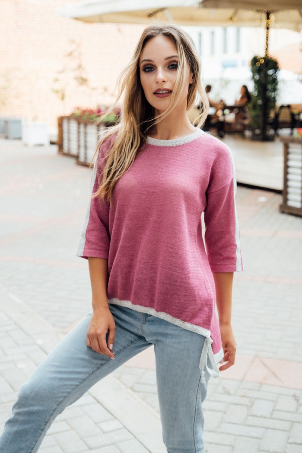 Джемпер 100% лен, силуэт прямой, горловина круглая.