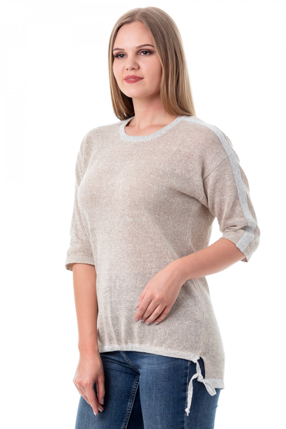 Джемпер 100% лен, силуэт прямой, горловина круглая.