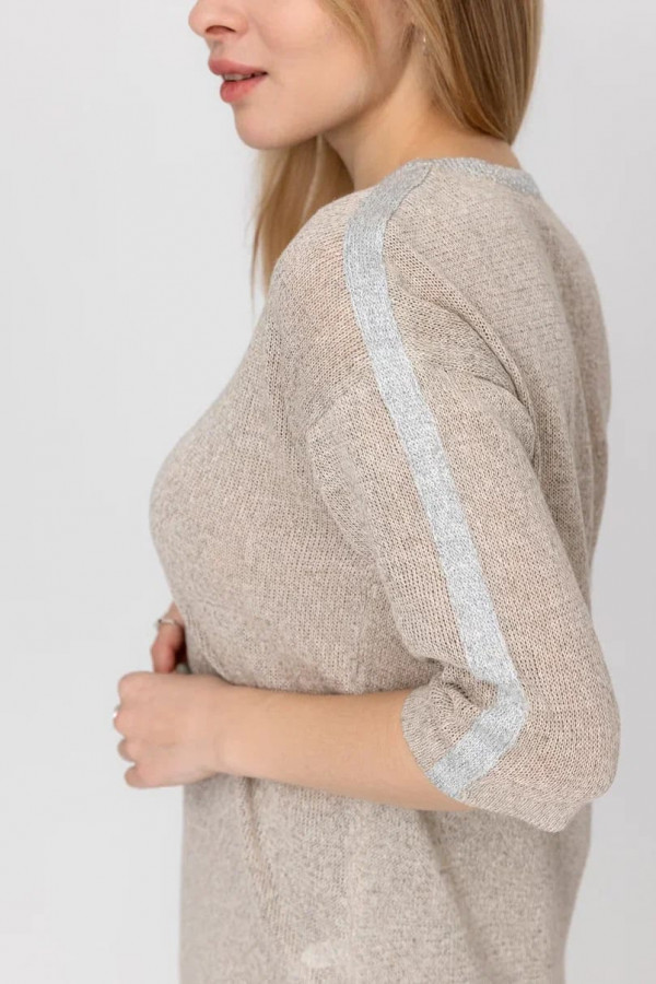 Рукав втачной 3/4. По рукаву настрочены льняные лампасы с добавлением метанитовой нити.