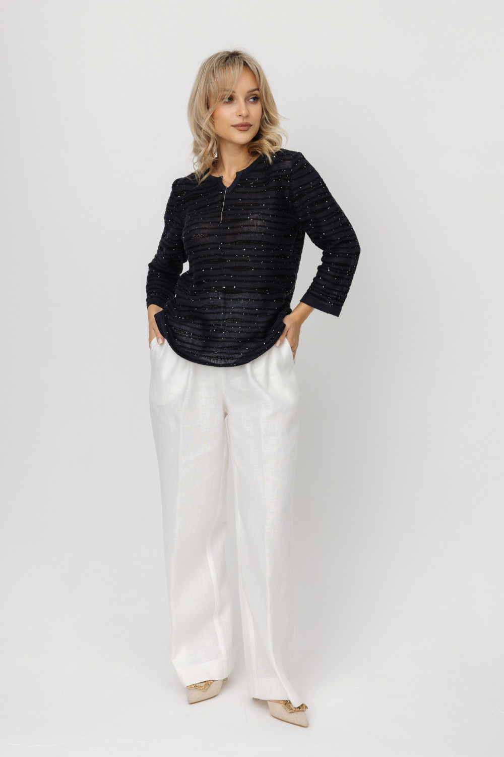 Джемпер 95% лен, 5% паетки, силуэт прямой.