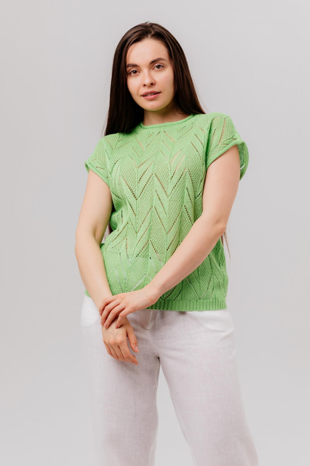 Джемпер повседневный 100% лен, свободного кроя, прямого силуэта.