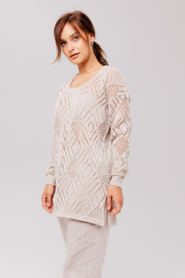 Джемпер повседневный 100% лен, свободного кроя, прямого силуэта.