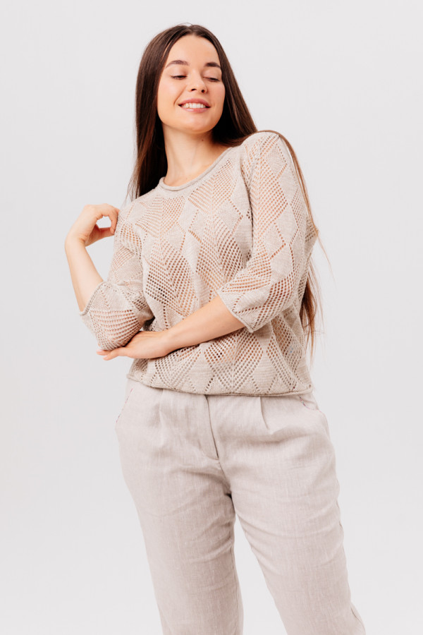 Джемпер повседневный 100% лен, свободного кроя, прямого силуэта.
