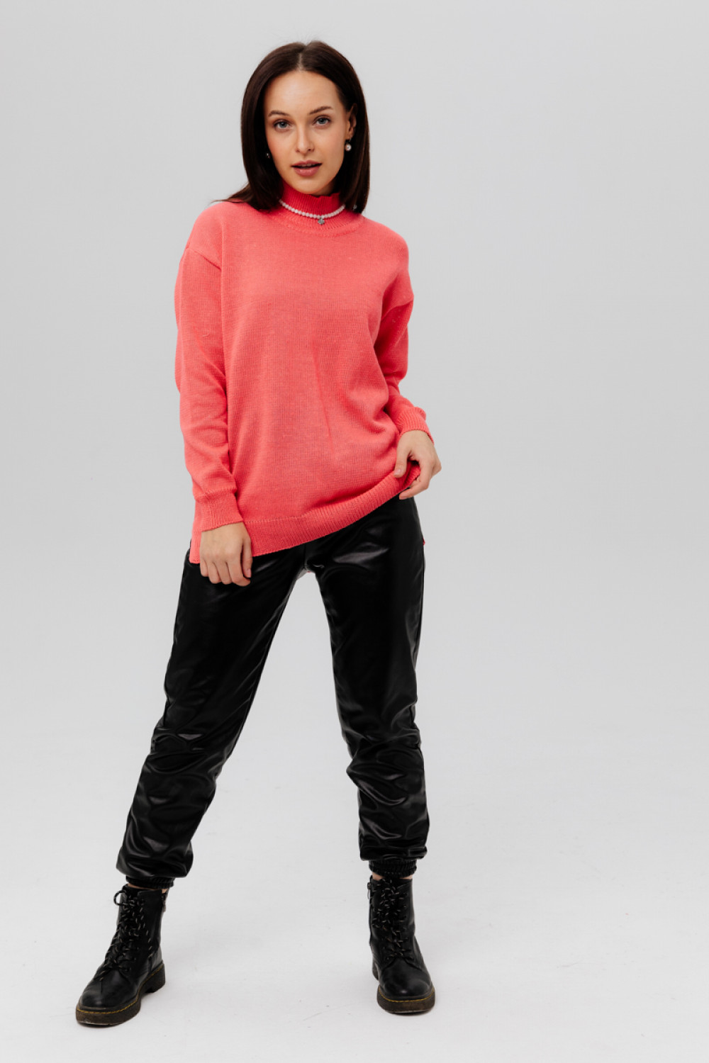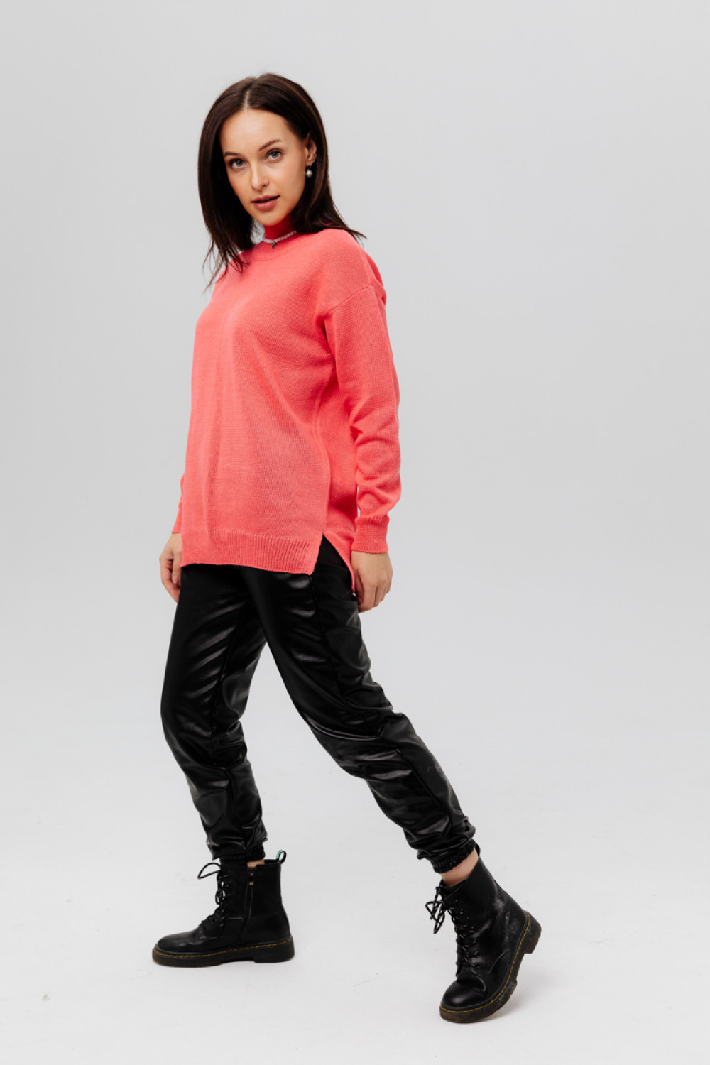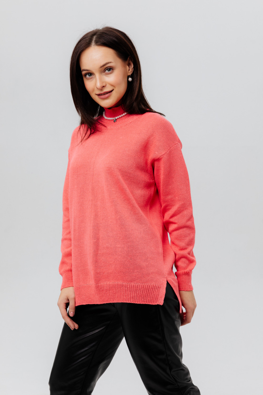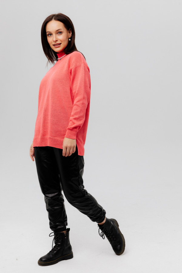 Джемпер из льна 4-284 коралл