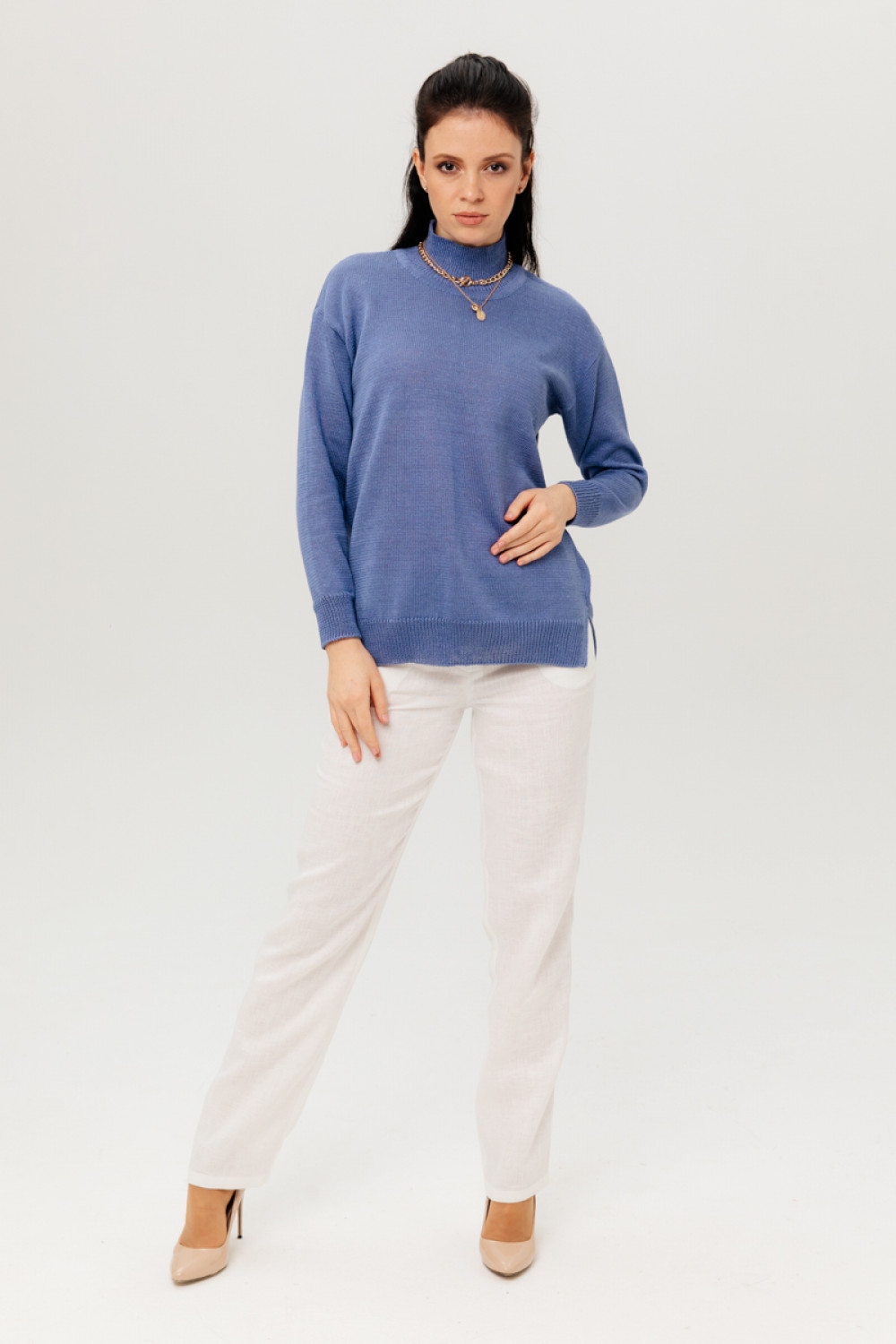 Джемпер повседневный 100% лен, свободного кроя, прямого силуэта.