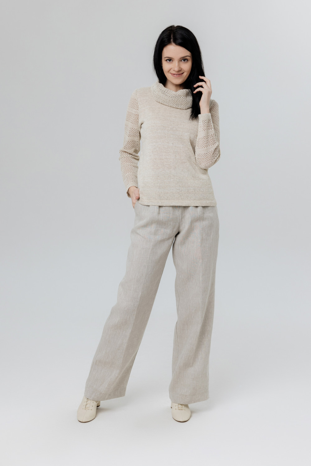 Джемпер повседневный 100% лен, свободного кроя, прямого силуэта.