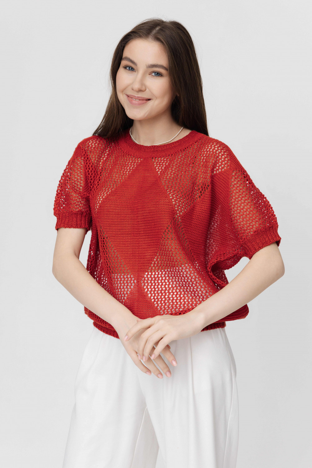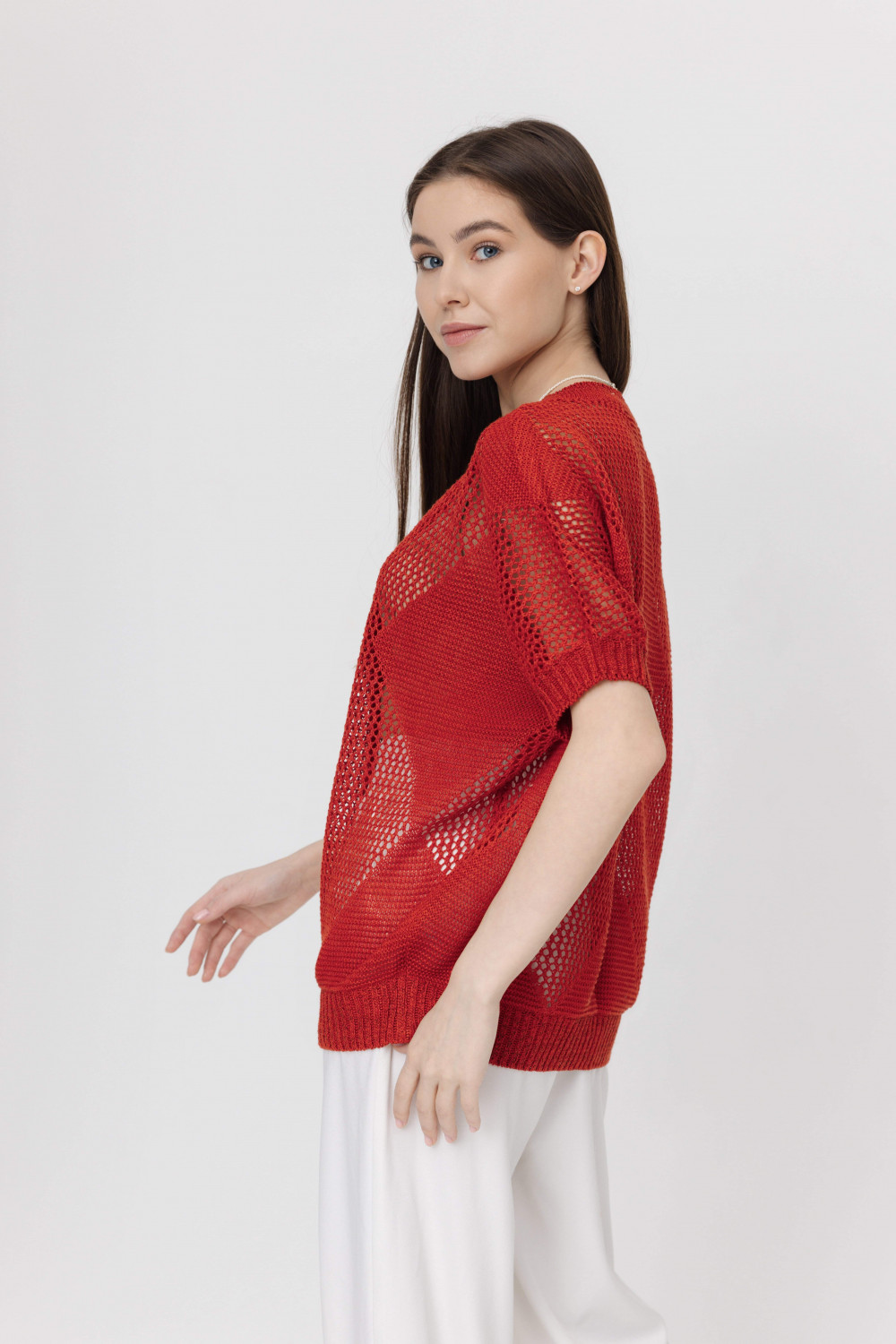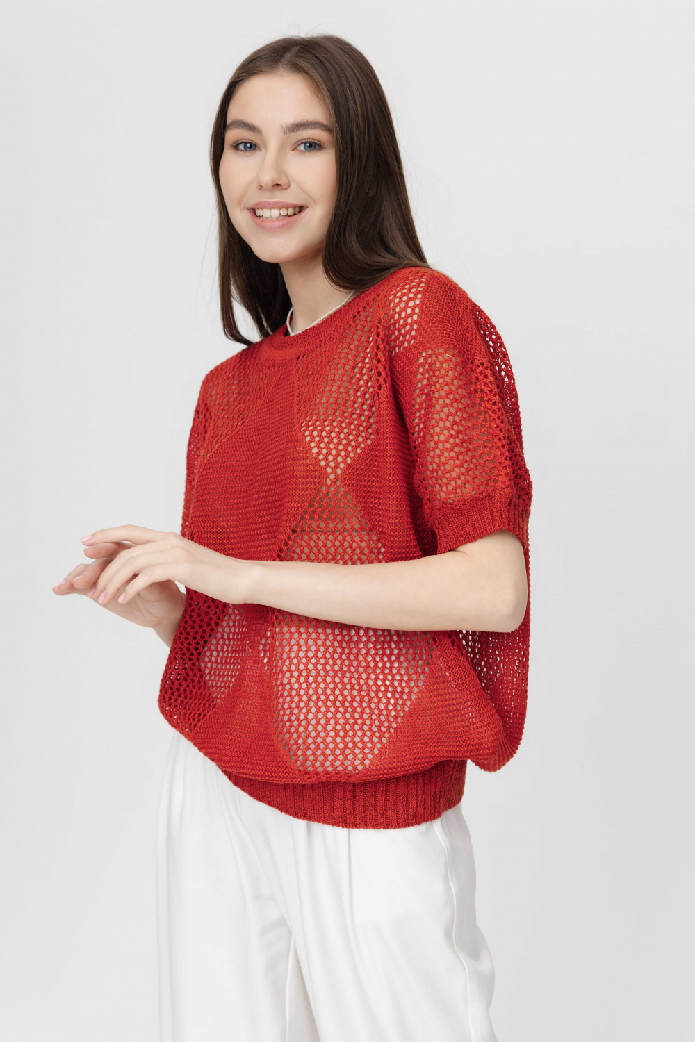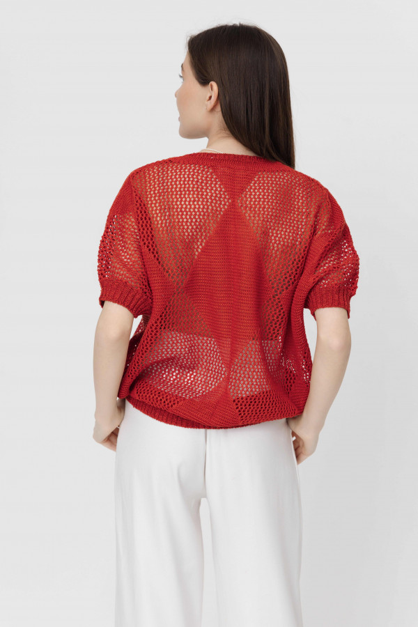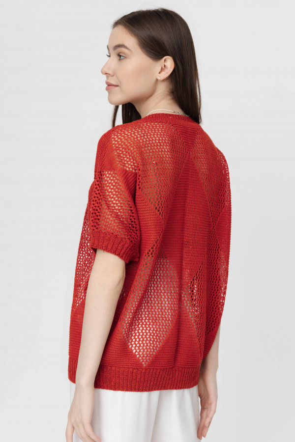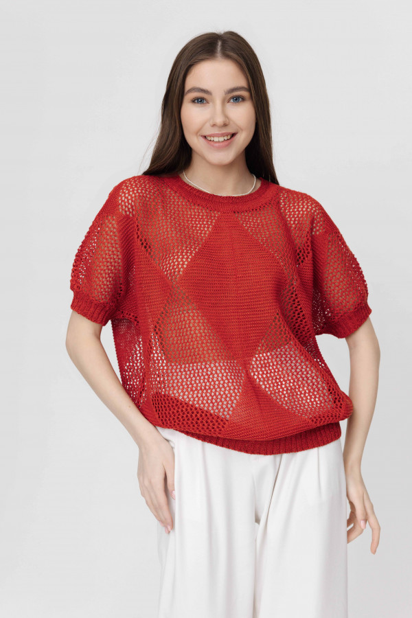 Джемпер повседневный 100% лен, ажурный, свободного кроя, прямого силуэта.