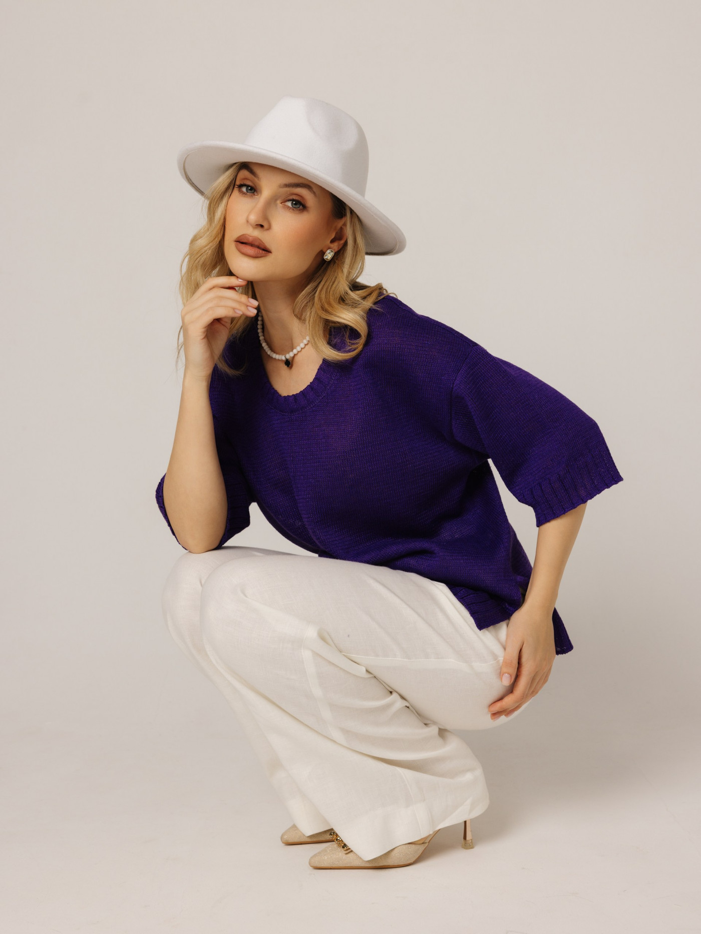 Джемпер повседневный 100% лен, свободного кроя, прямого силуэта.