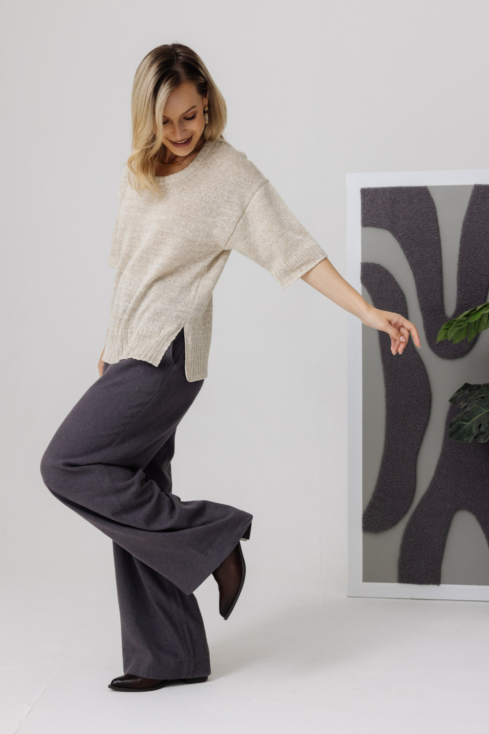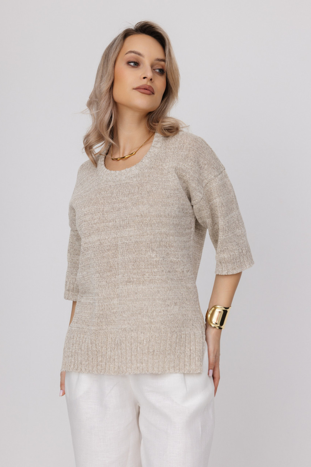 Джемпер повседневный 100% лен, свободного кроя, прямого силуэта.