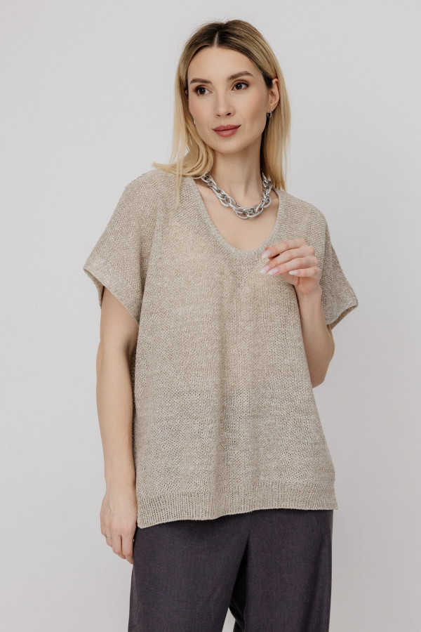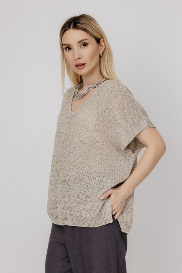 Джемпер повседневный 100% лен, свободного кроя, прямого силуэта.