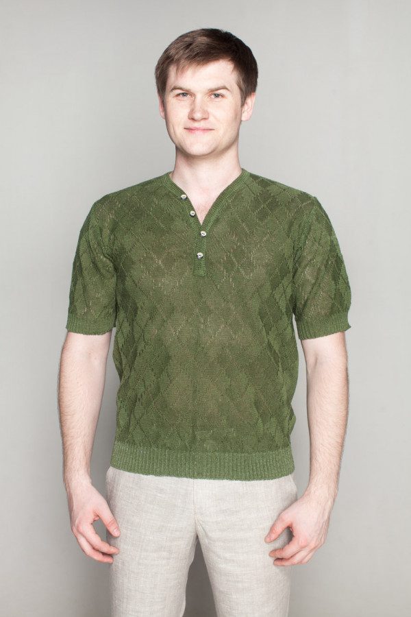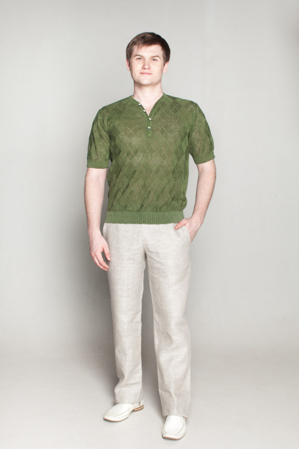 Джемпер из льна. Рукав короткий. По низу изделя и низу рукава резинка.