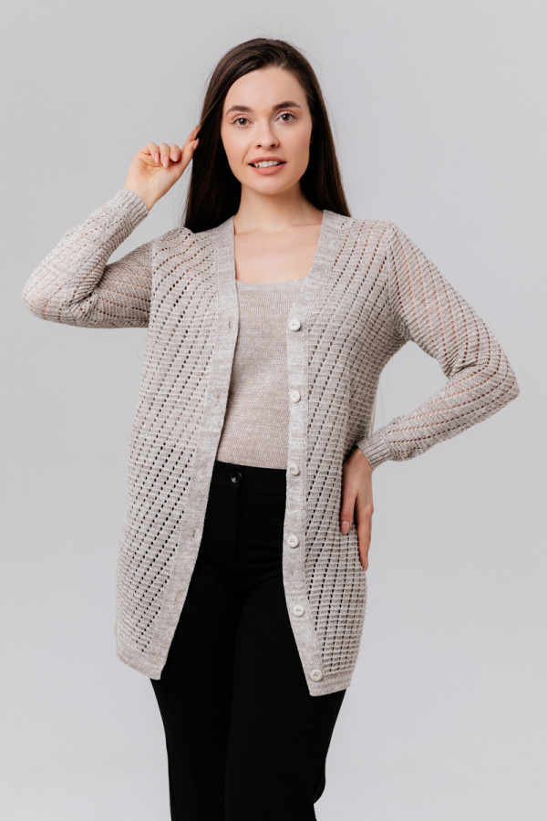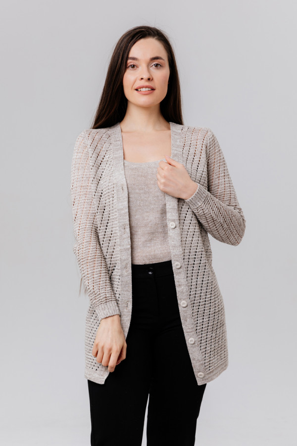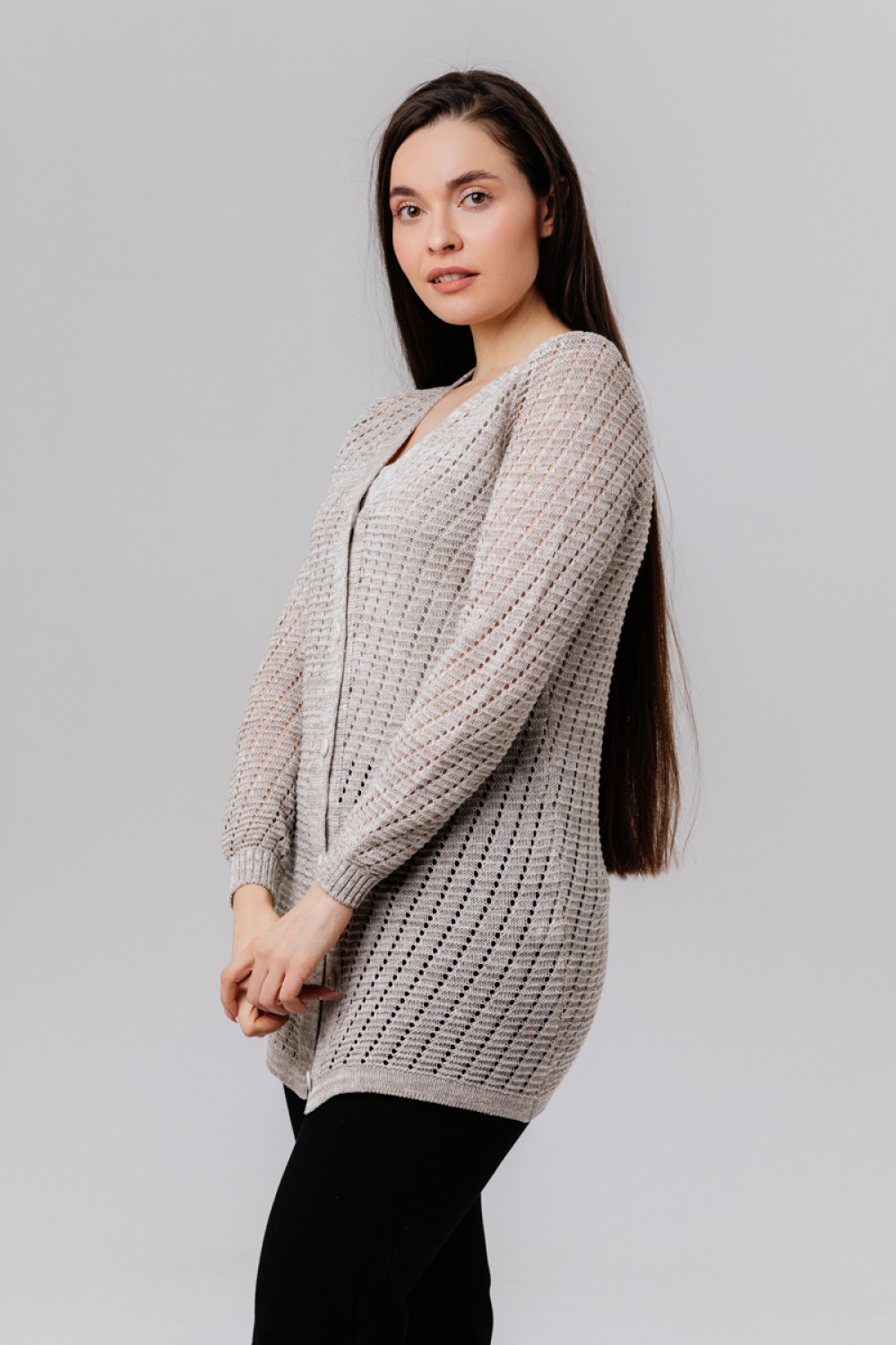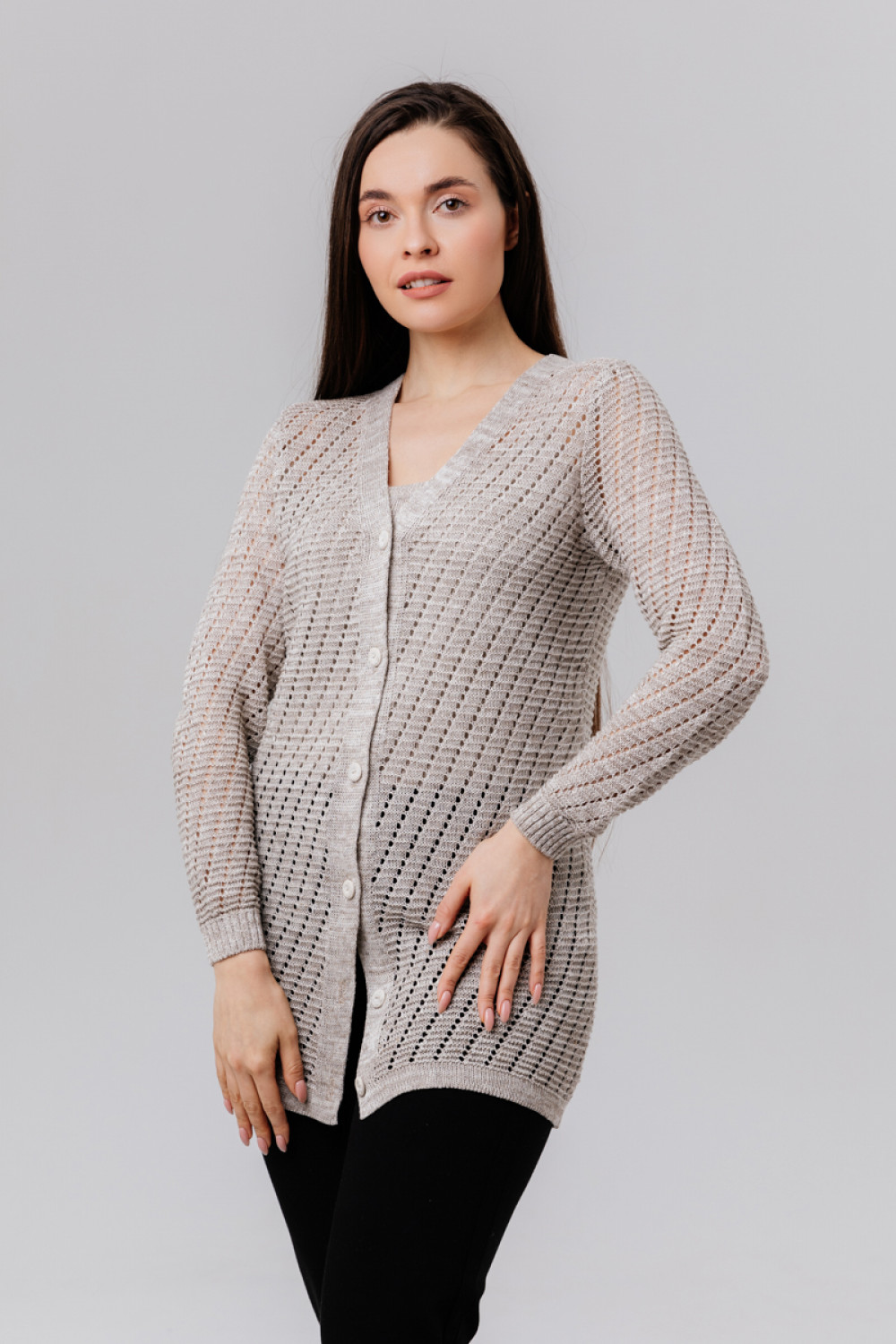 Кардиган лен 100%, ажурный, силуэт прямой.