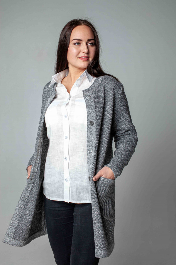 Кардиган лен 60%, п/ш 40%, силуэт приталенный.