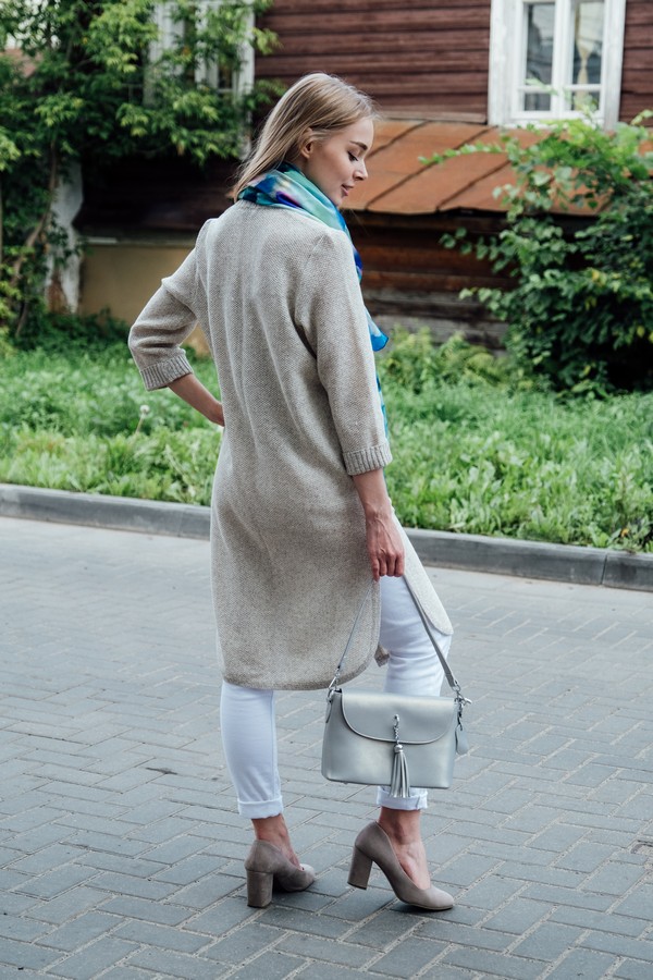 Кардиган 100% лен, силуэт прямой. По бокам фигурные разрезы.