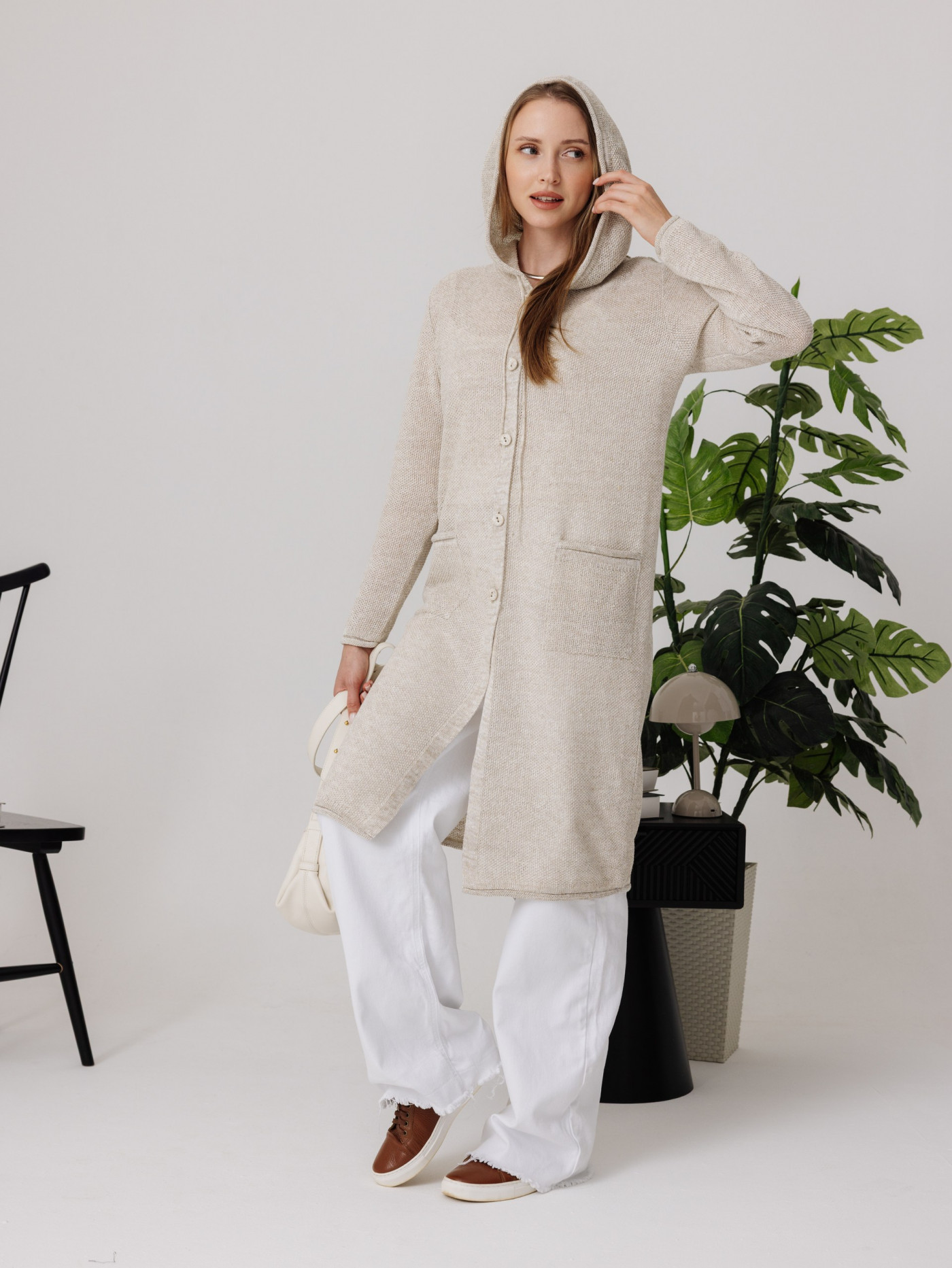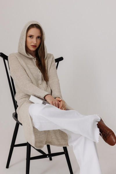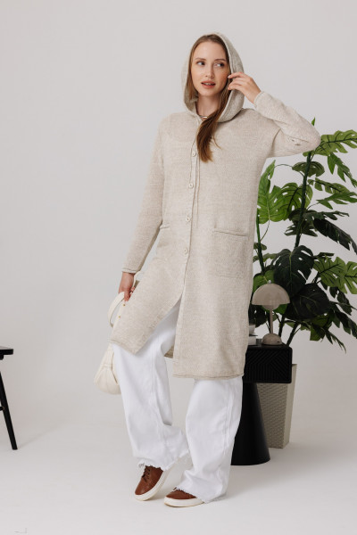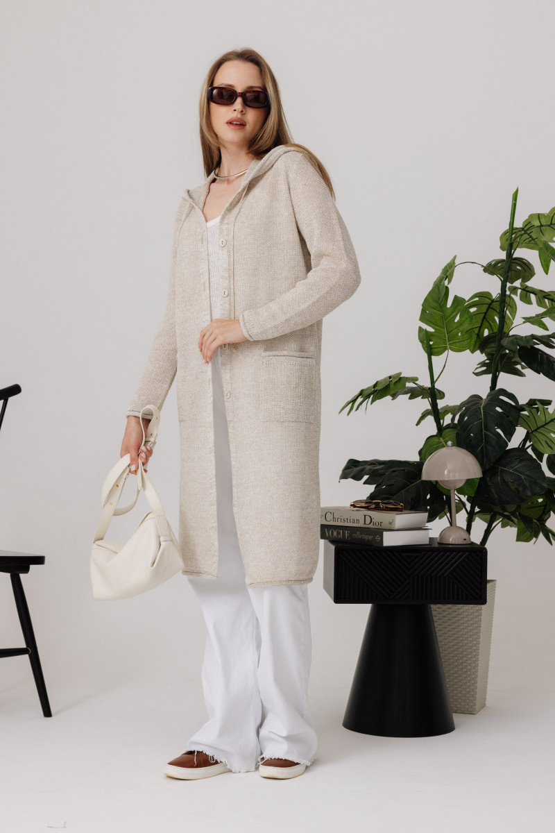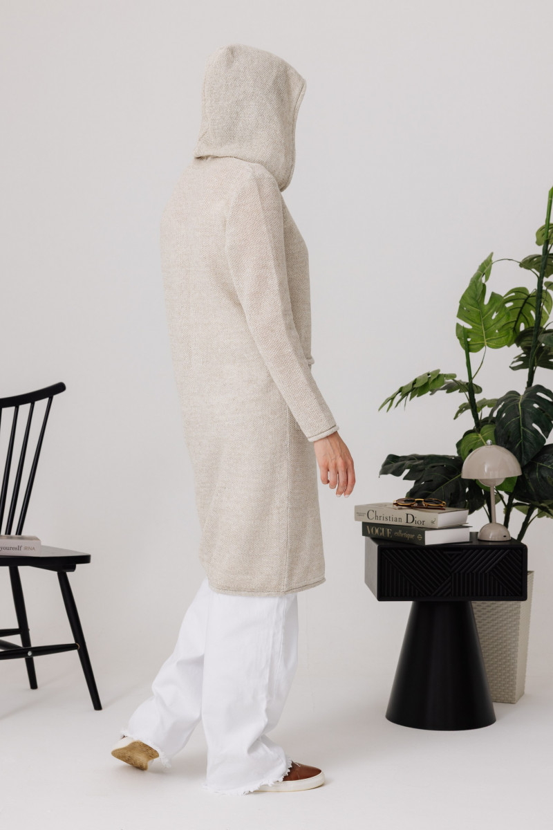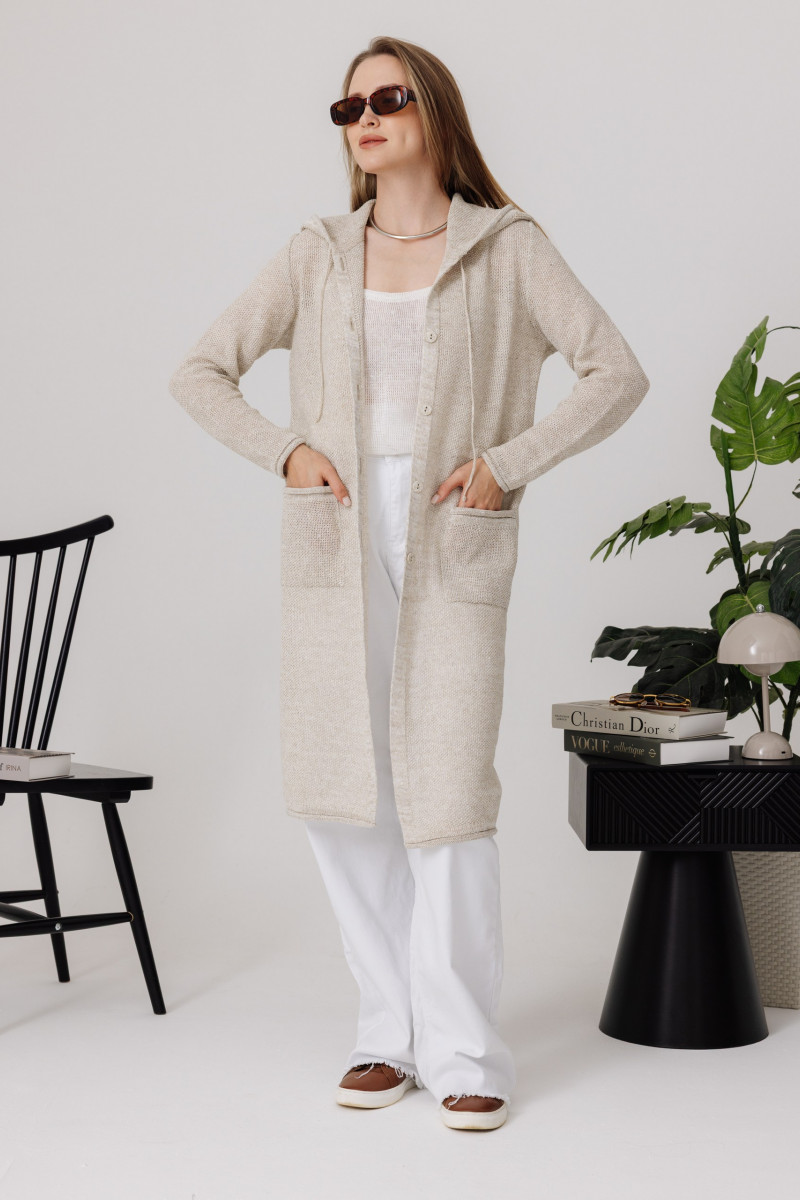 Кардиган 100% лен с капюшоном, силуэт прямой.