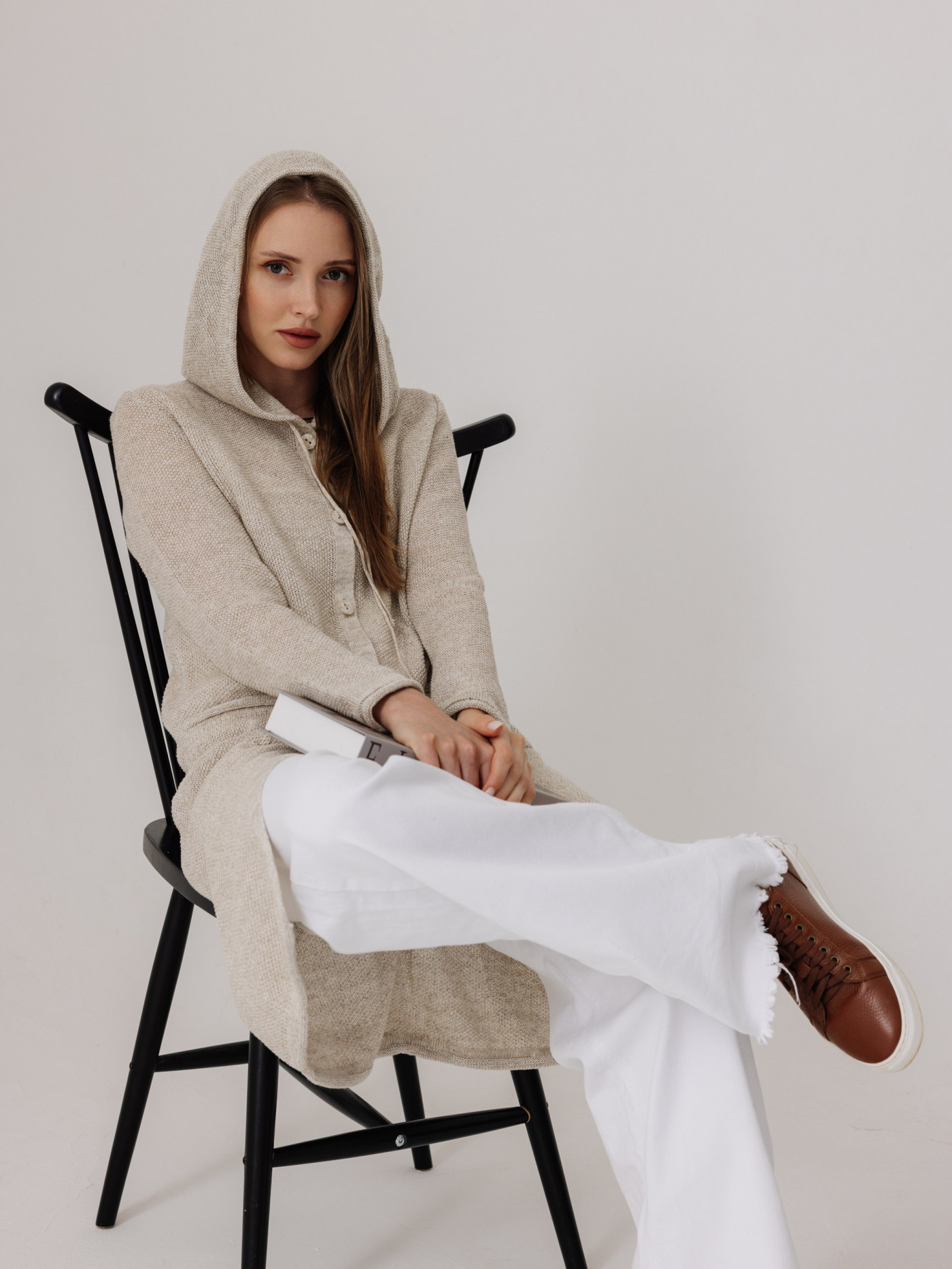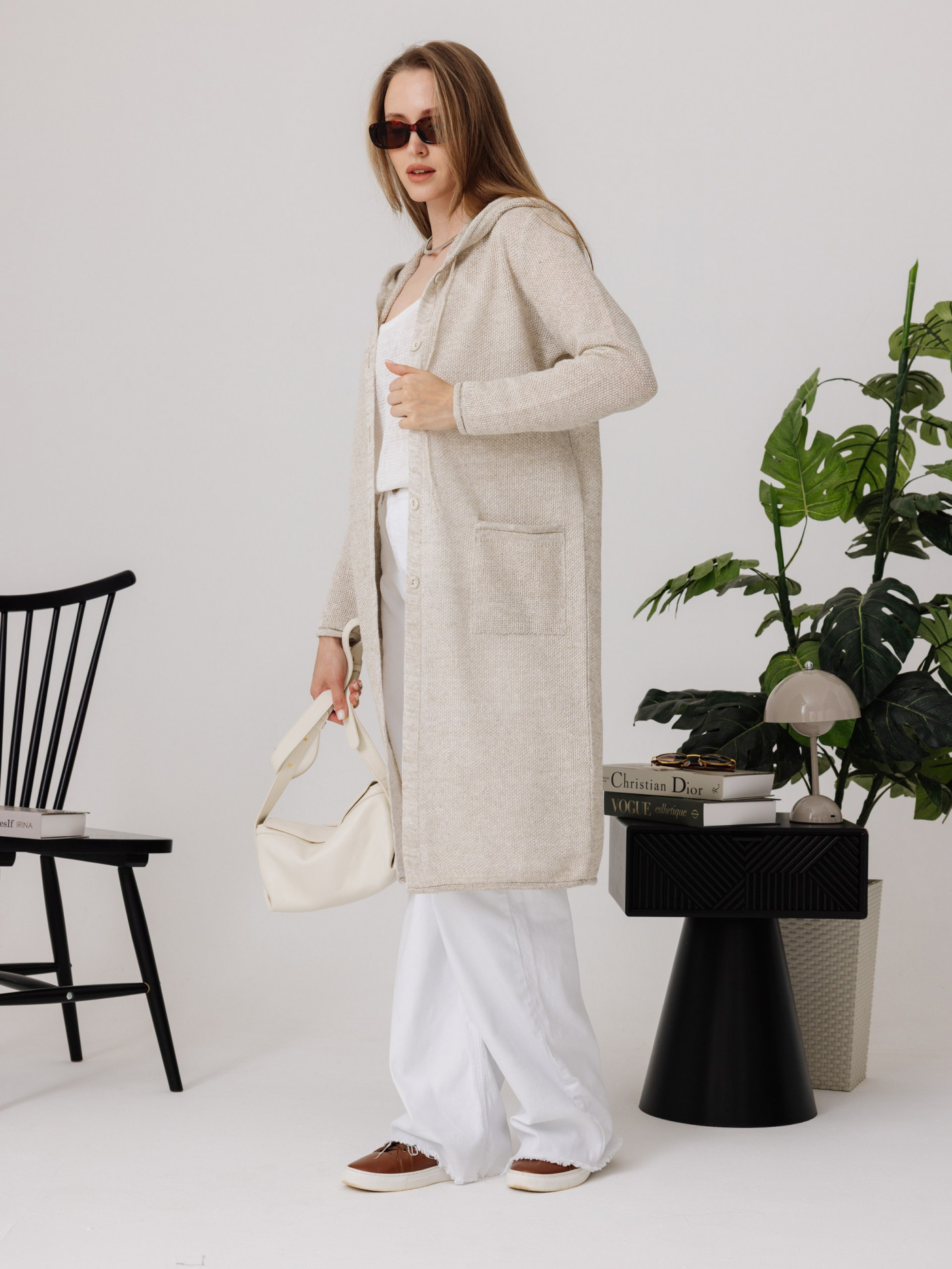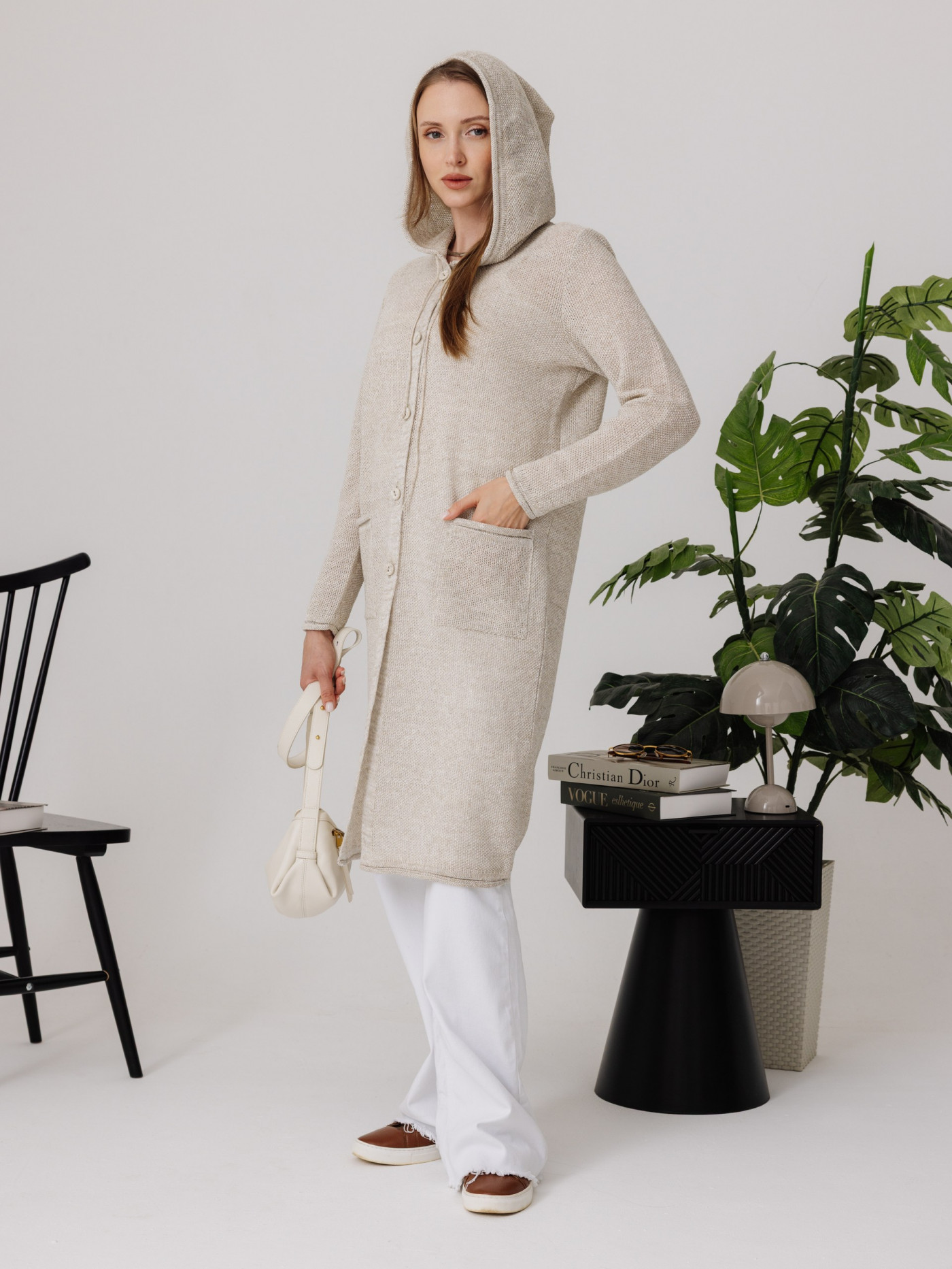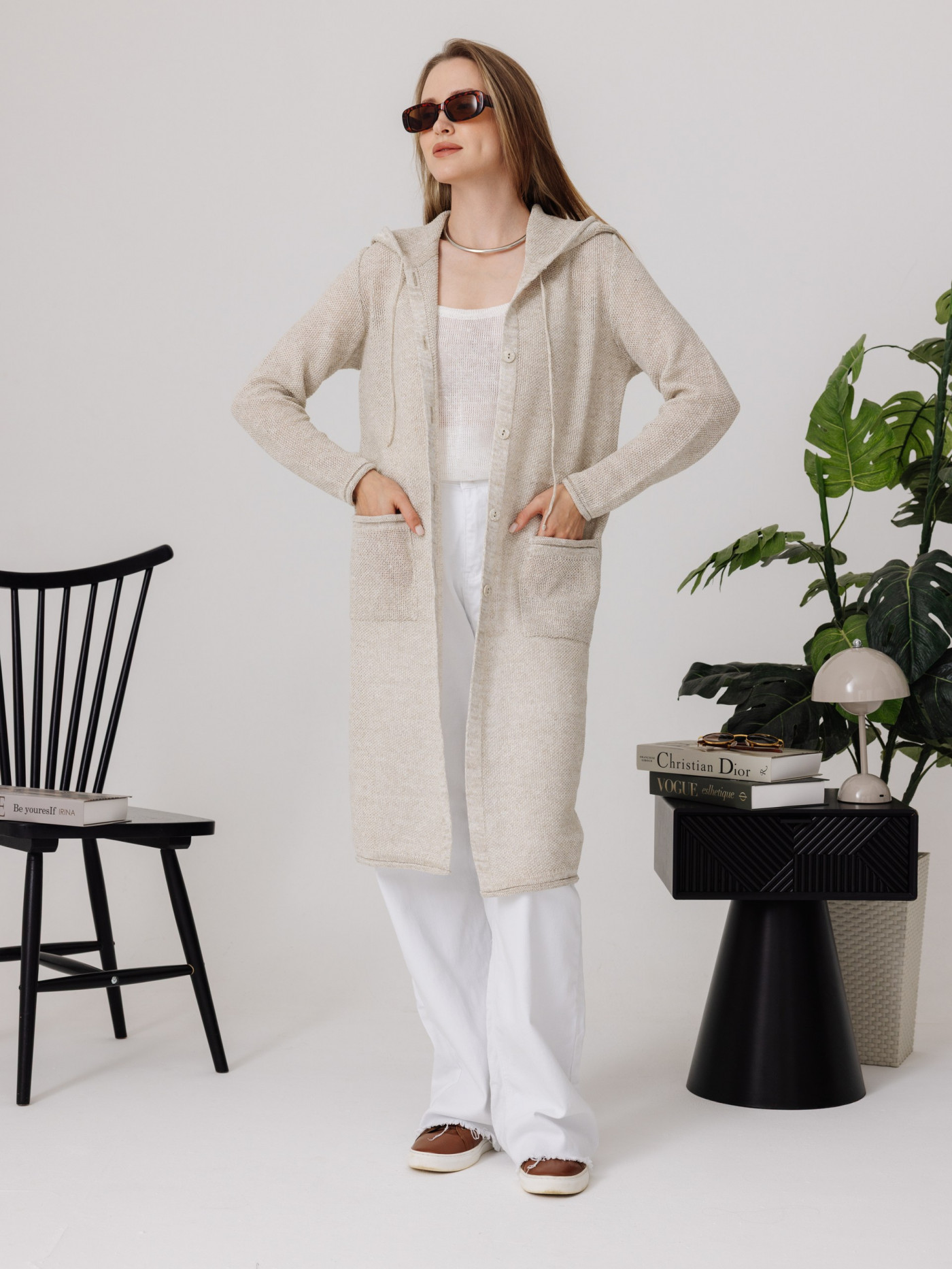 Кардиган 100% лен с капюшоном, силуэт прямой.