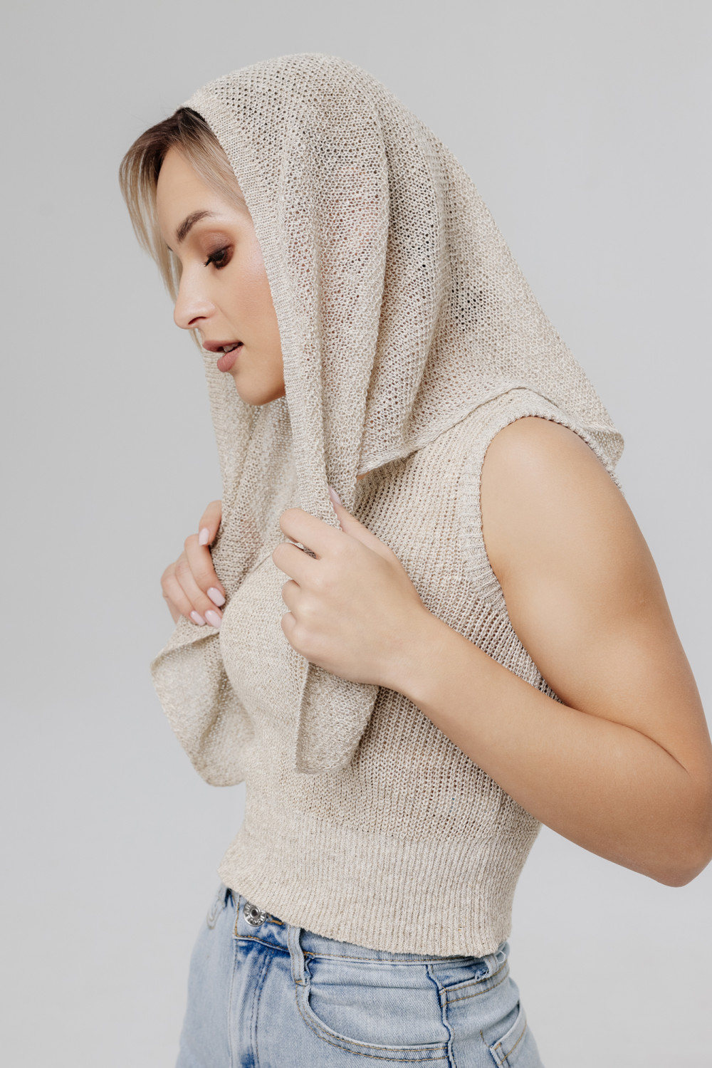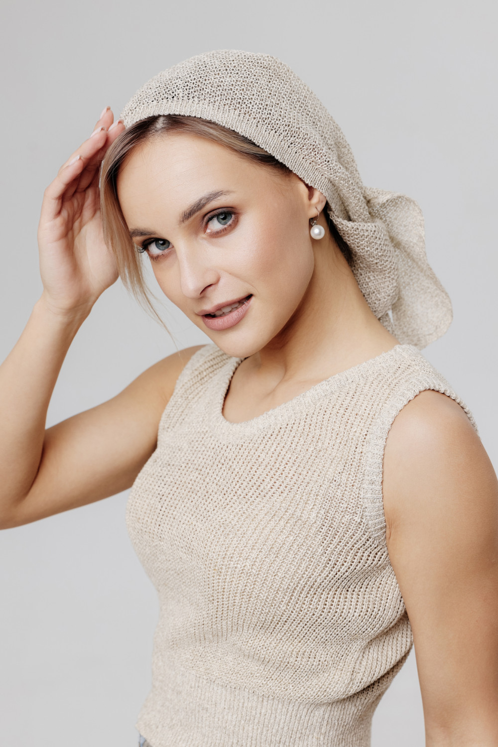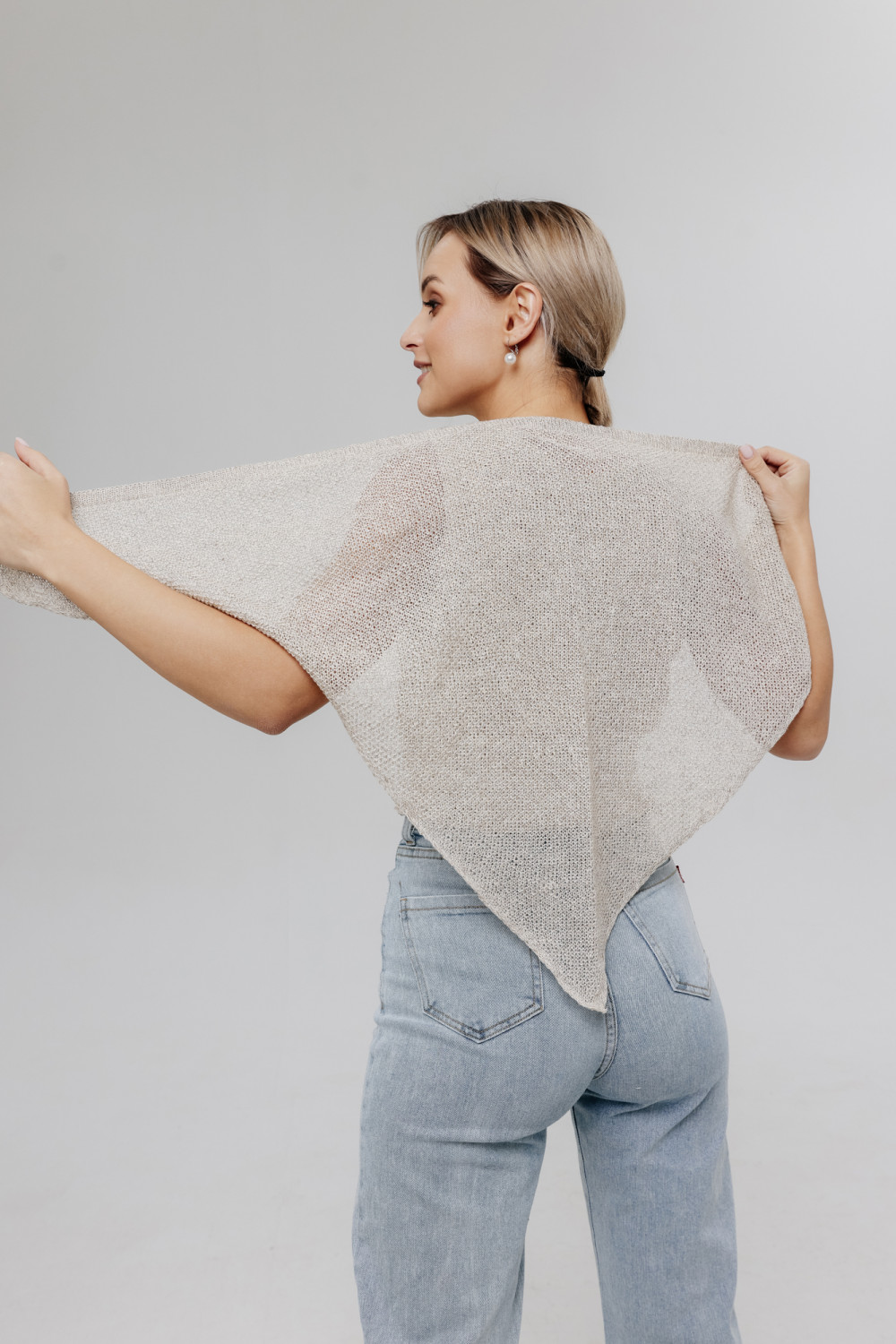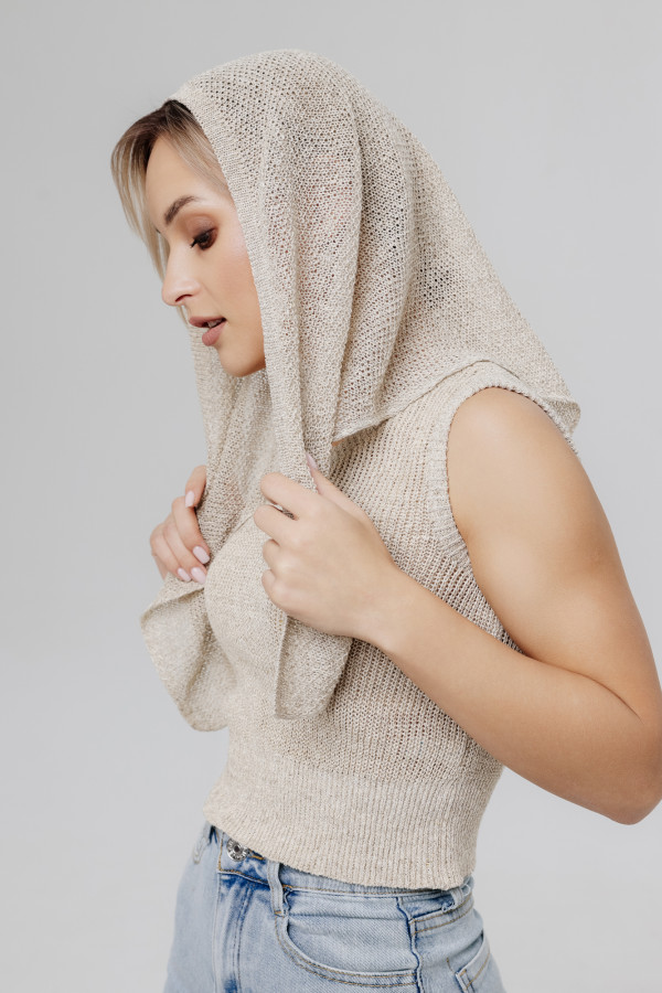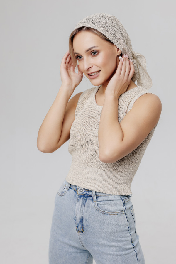 Косынка из льна. Вязка рисовая.