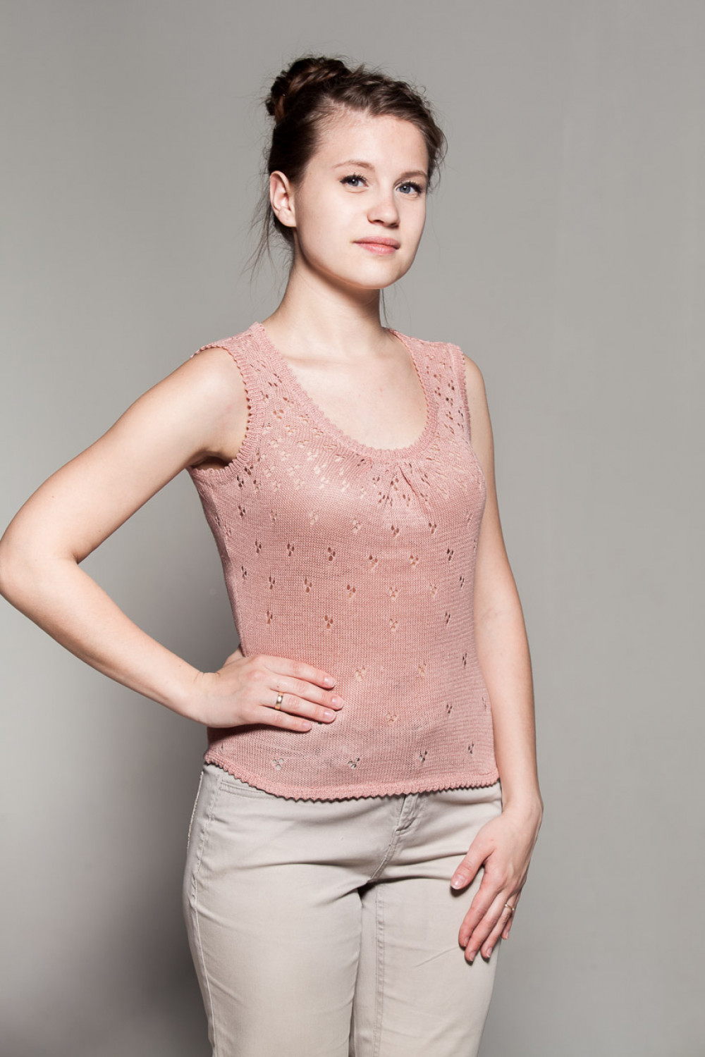 Топ лен 100%, силуэт приталенный, ажурный.