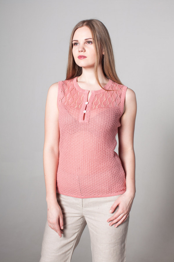 Горловина круглая оформлена планкой на 2-х пуговицах.