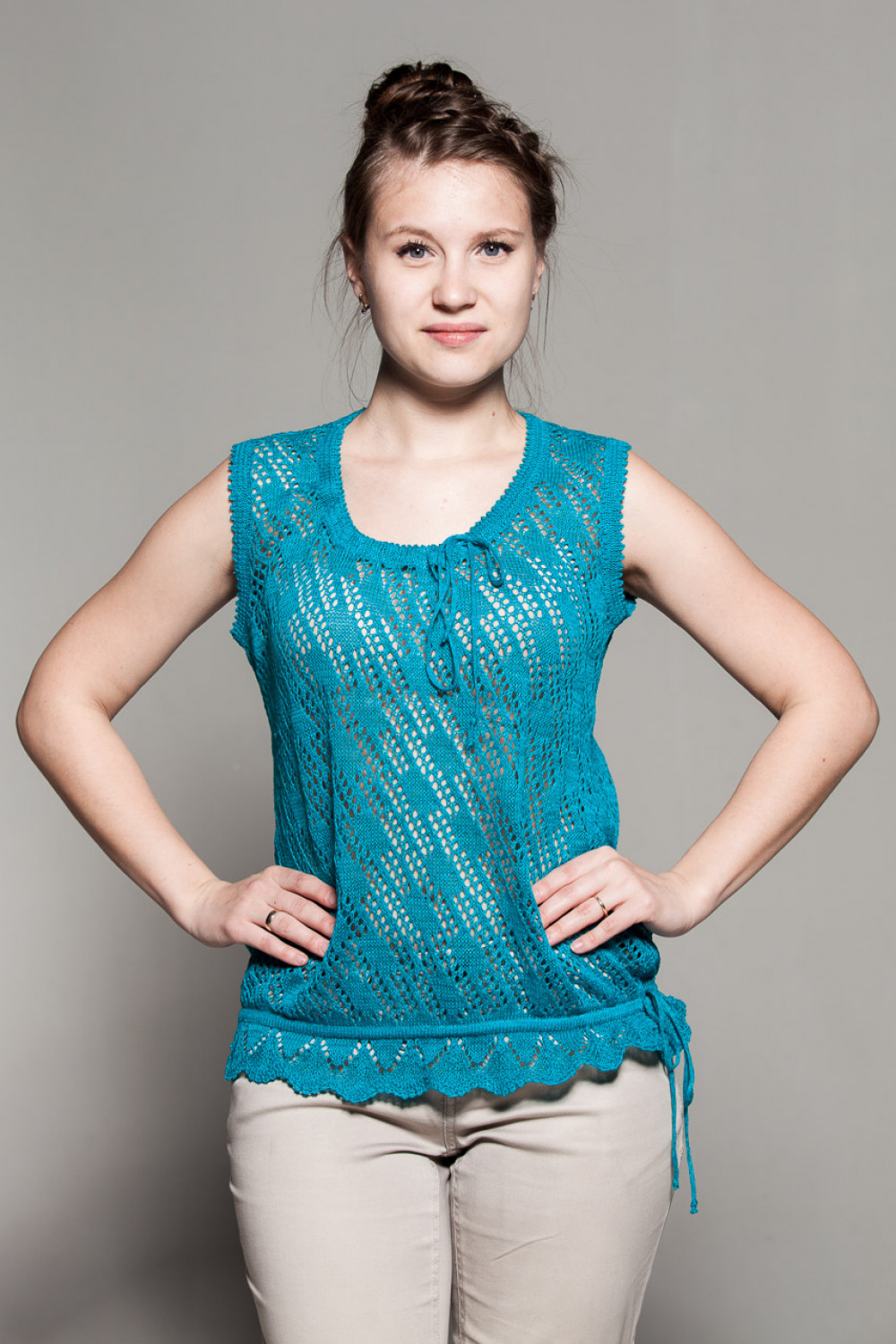 Топ 100% лен, ажур, силуэт приталенный.