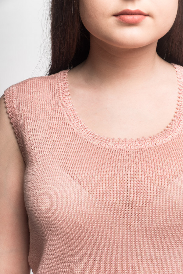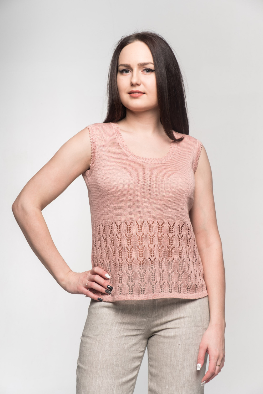Топ 100% лен, силуэт прямой укороченный, горловина круглая.