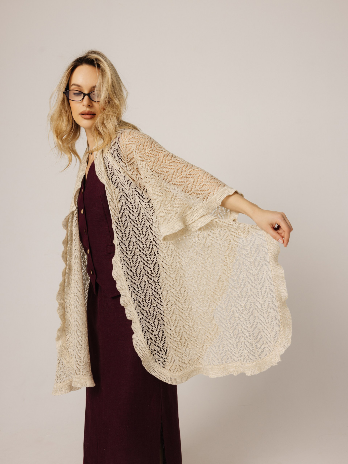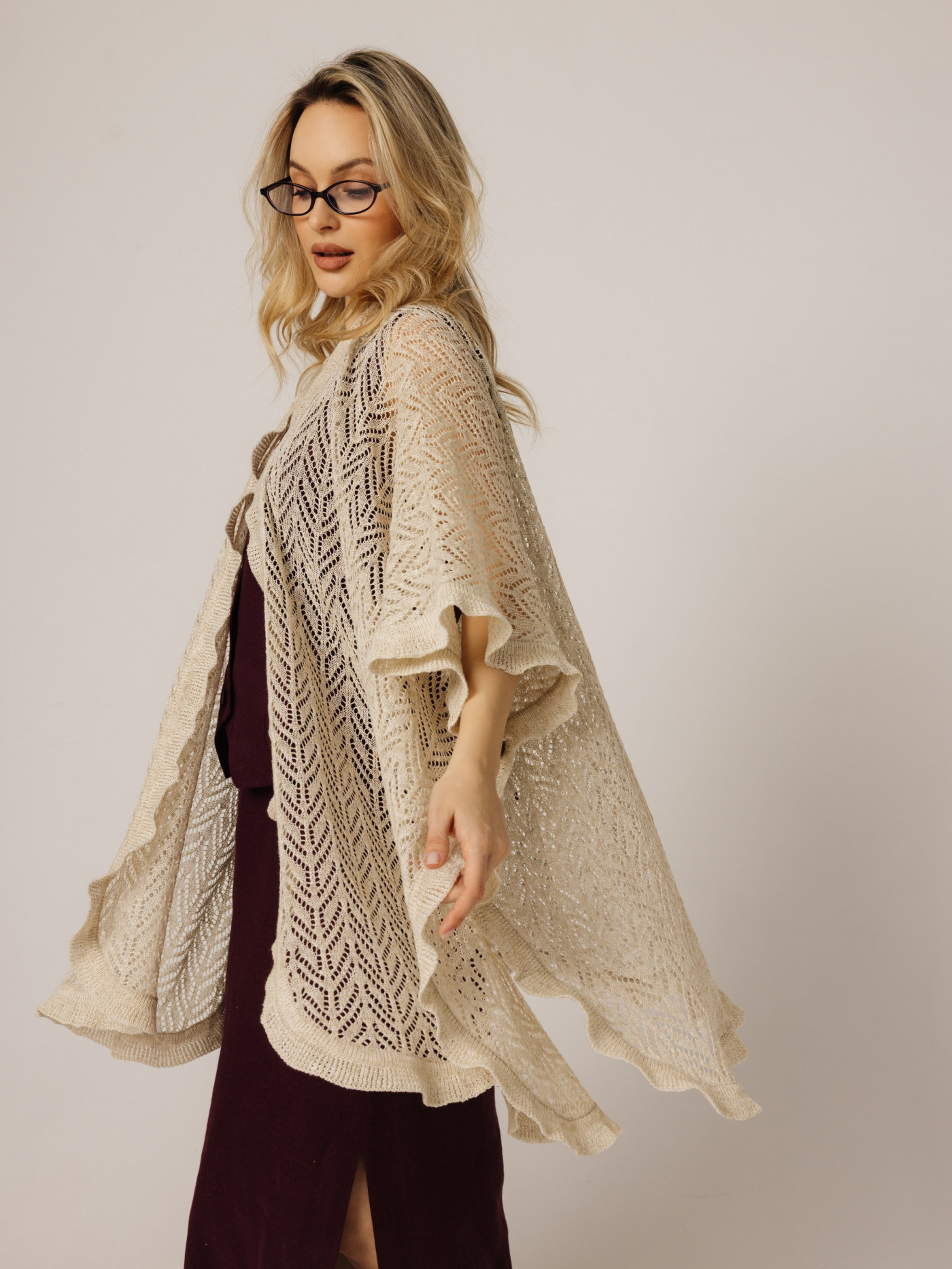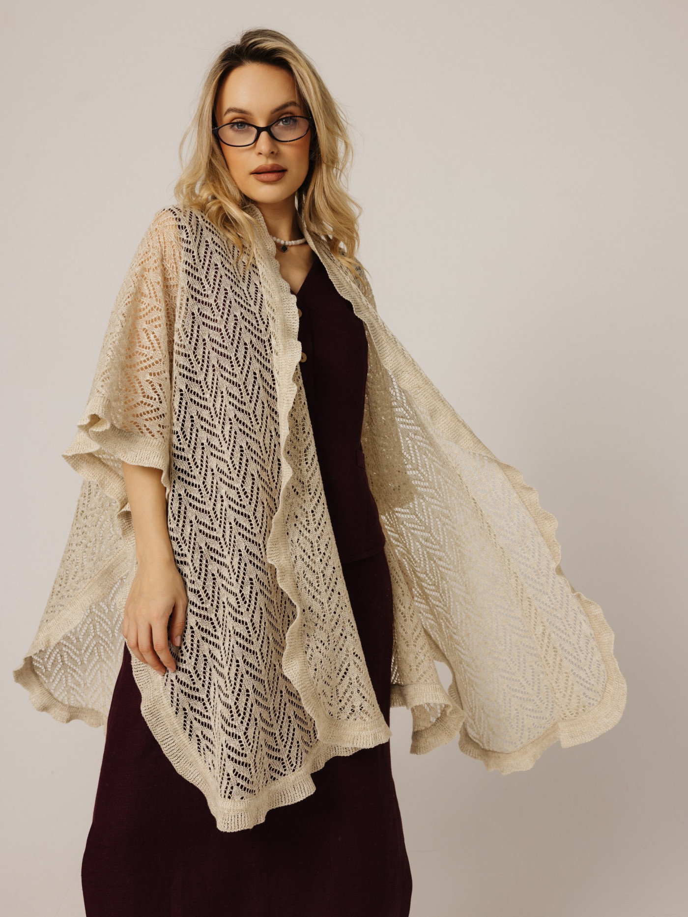Палантин ажурный изл льна.