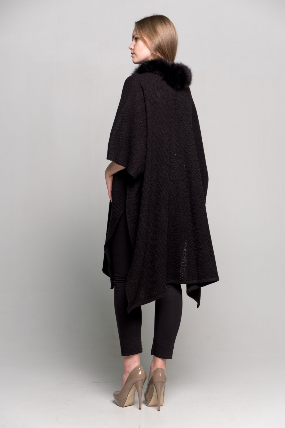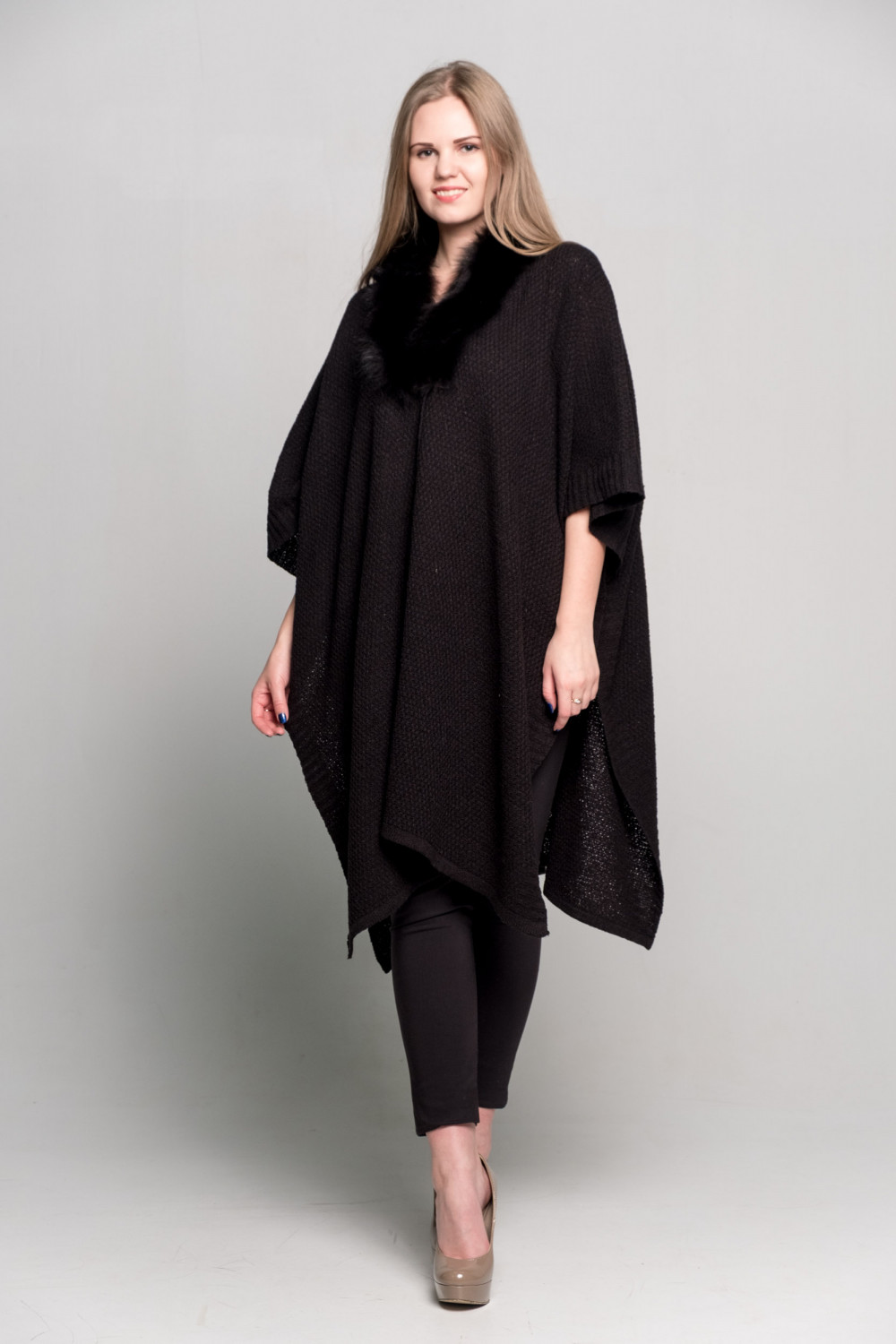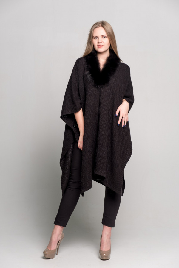 Палантин букле п/ш 40%, льна 60 %., Горловина обработана мехом, песец черный крашеный.