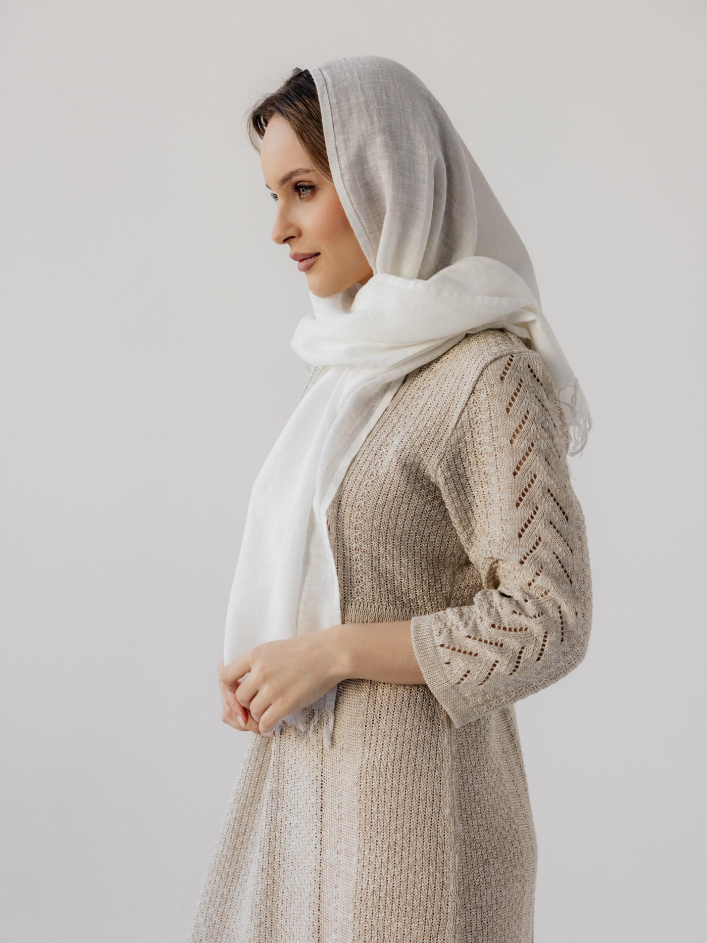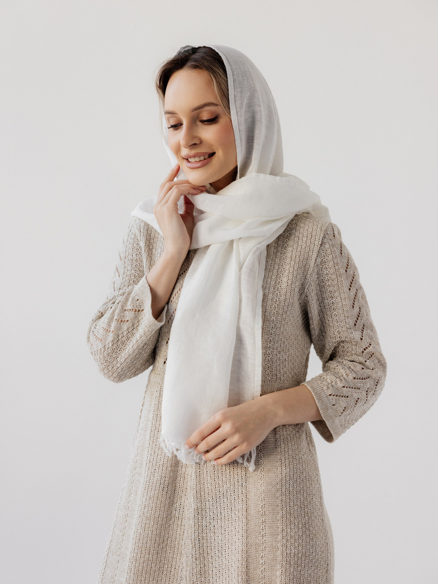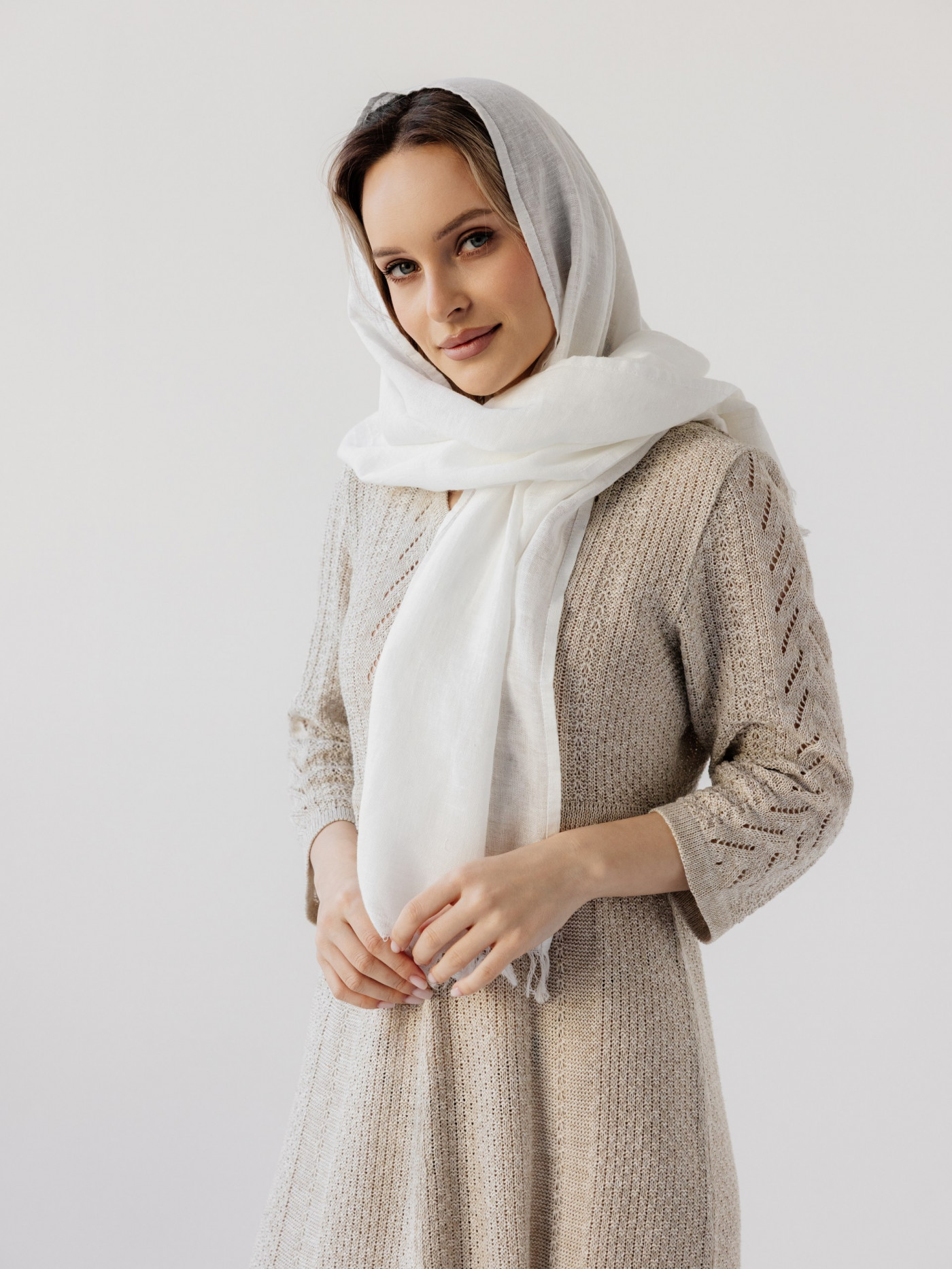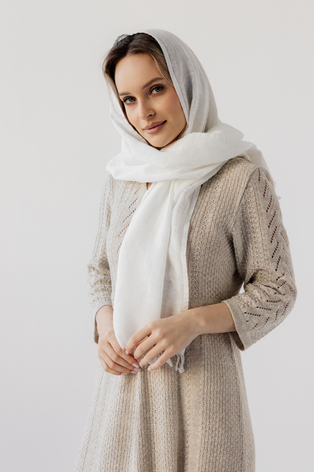 Палантин льняной 17-22V белый